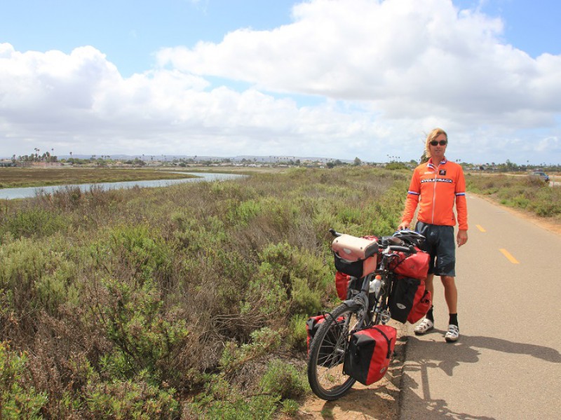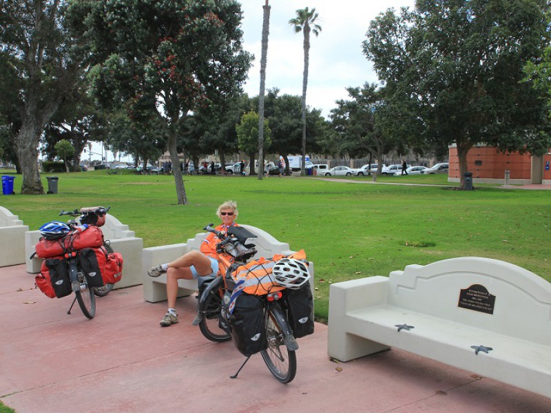 Toen we op Baja waren hebben we een aantal keren gekampeerd. Een van die keren was in het gehuchtje Puerto Escondido, een klein stukje voor Loreto. Toen we ’s ochtends nog even in het winkeltje waren, ontmoetten we een man. Jorge is Mexicaan van origine maar woont al heel lang in San Diego. Hij was op vakantie geweest op Baja en was op weg terug naar huis. Hij boodt ons een lift aan, maar die hebben we geweigerd omdat we graag het hele stuk wilden fietsen. Toen wisten we ook nog niet dat de tegenwind en saaiheid ons tegen zou blijven werken. We hebben vaak spijt gehad van het weigeren van zijn aanbod…! Hij boodt ons ook aan om gebruik te maken van zijn boot als we in San Diego zouden komen. Hij werkt in een jachthaven en heeft daar ook zijn zeilboot liggen. Dat aanbod hebben we wel aangenomen!