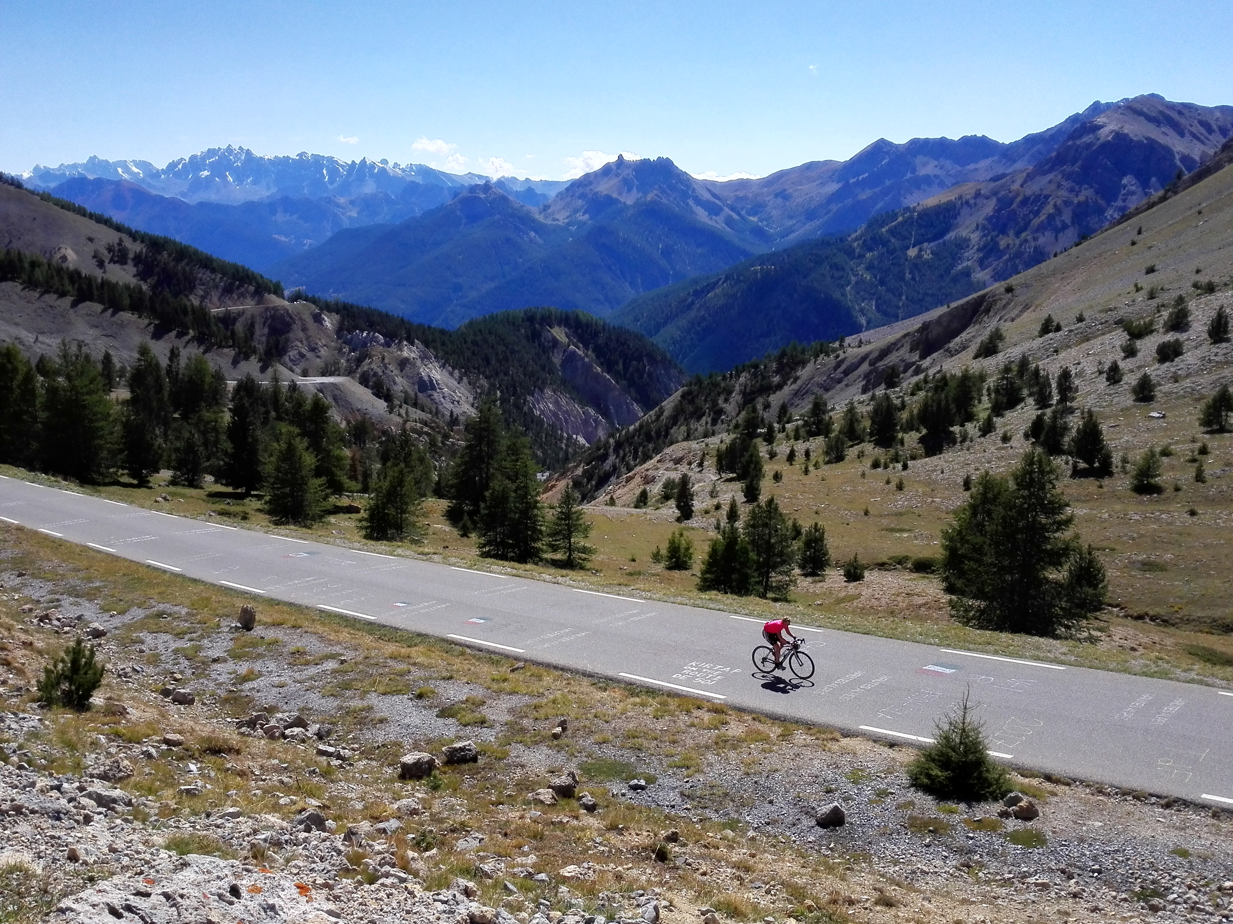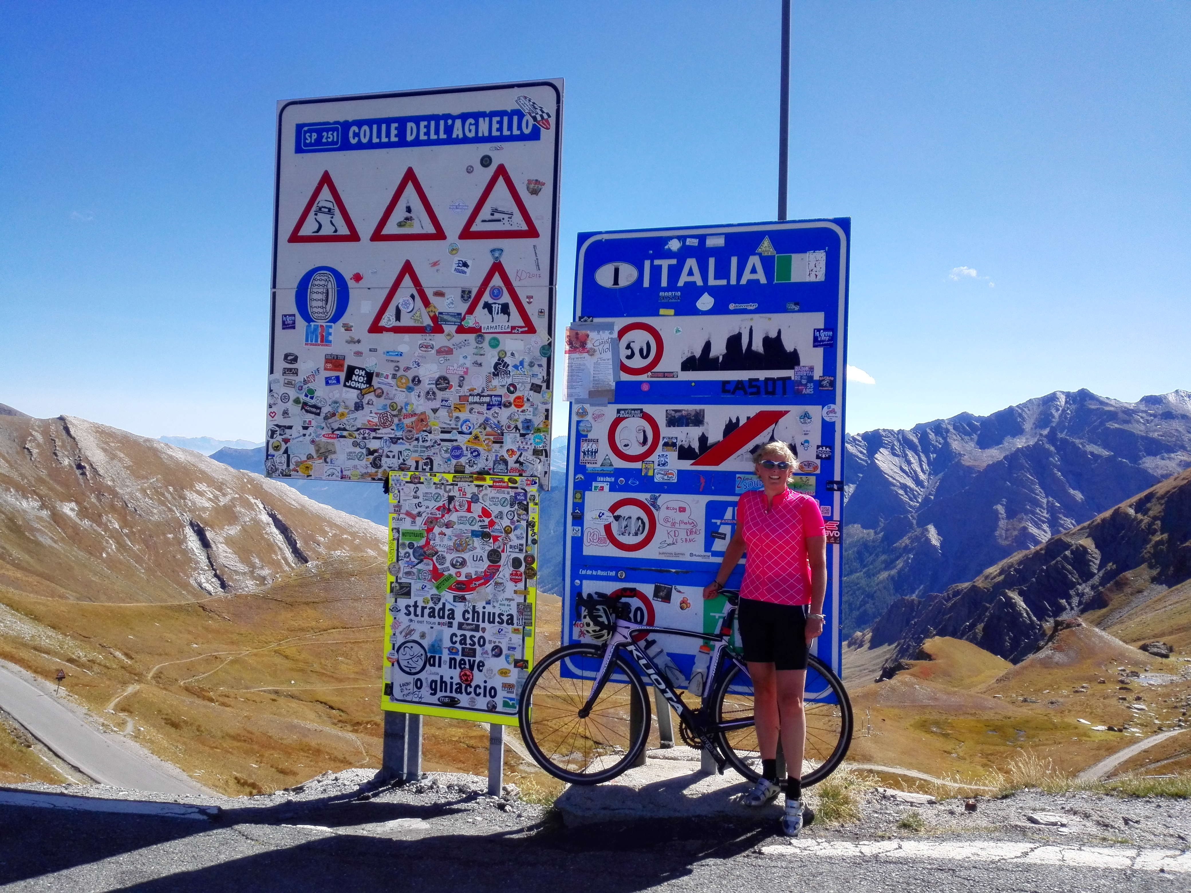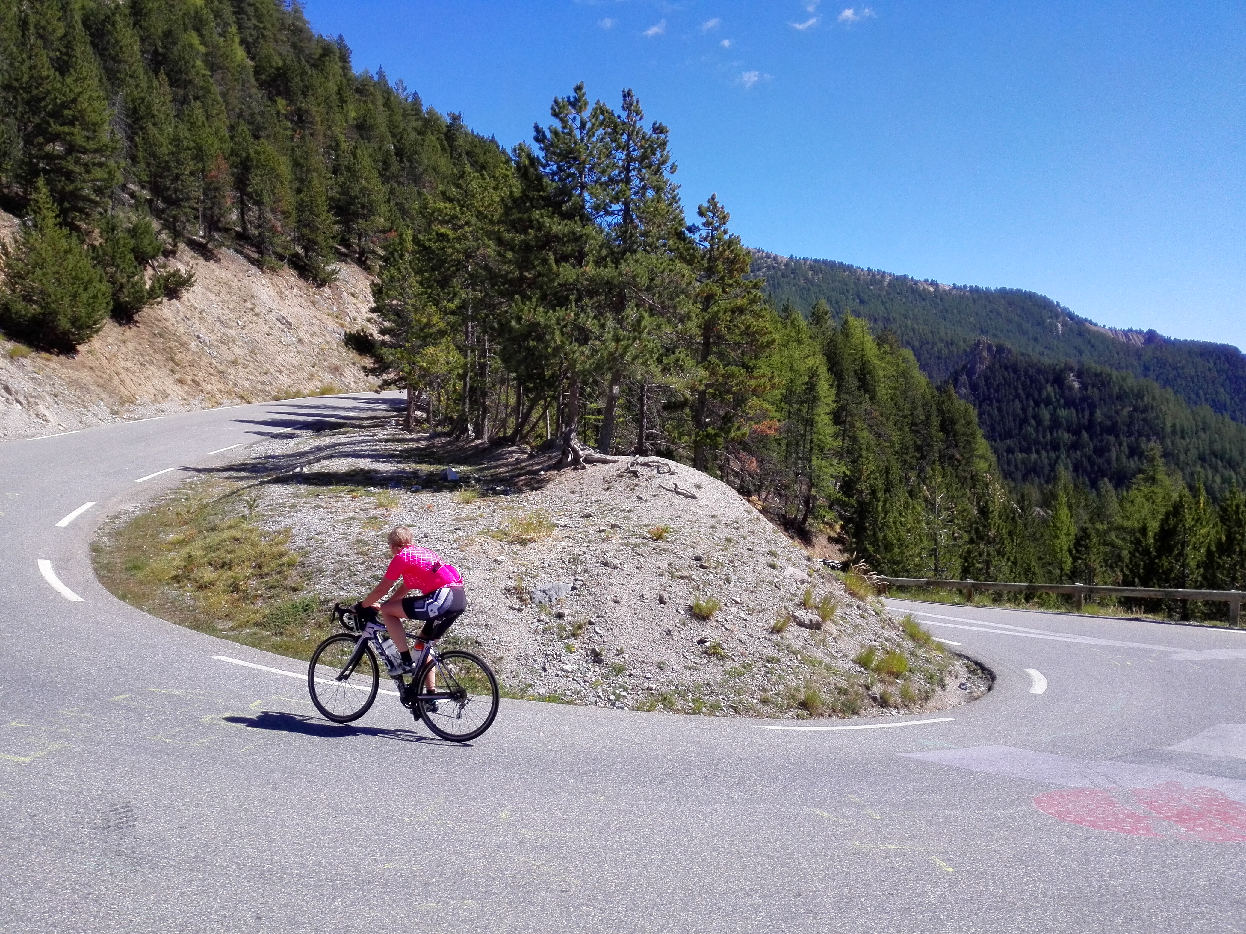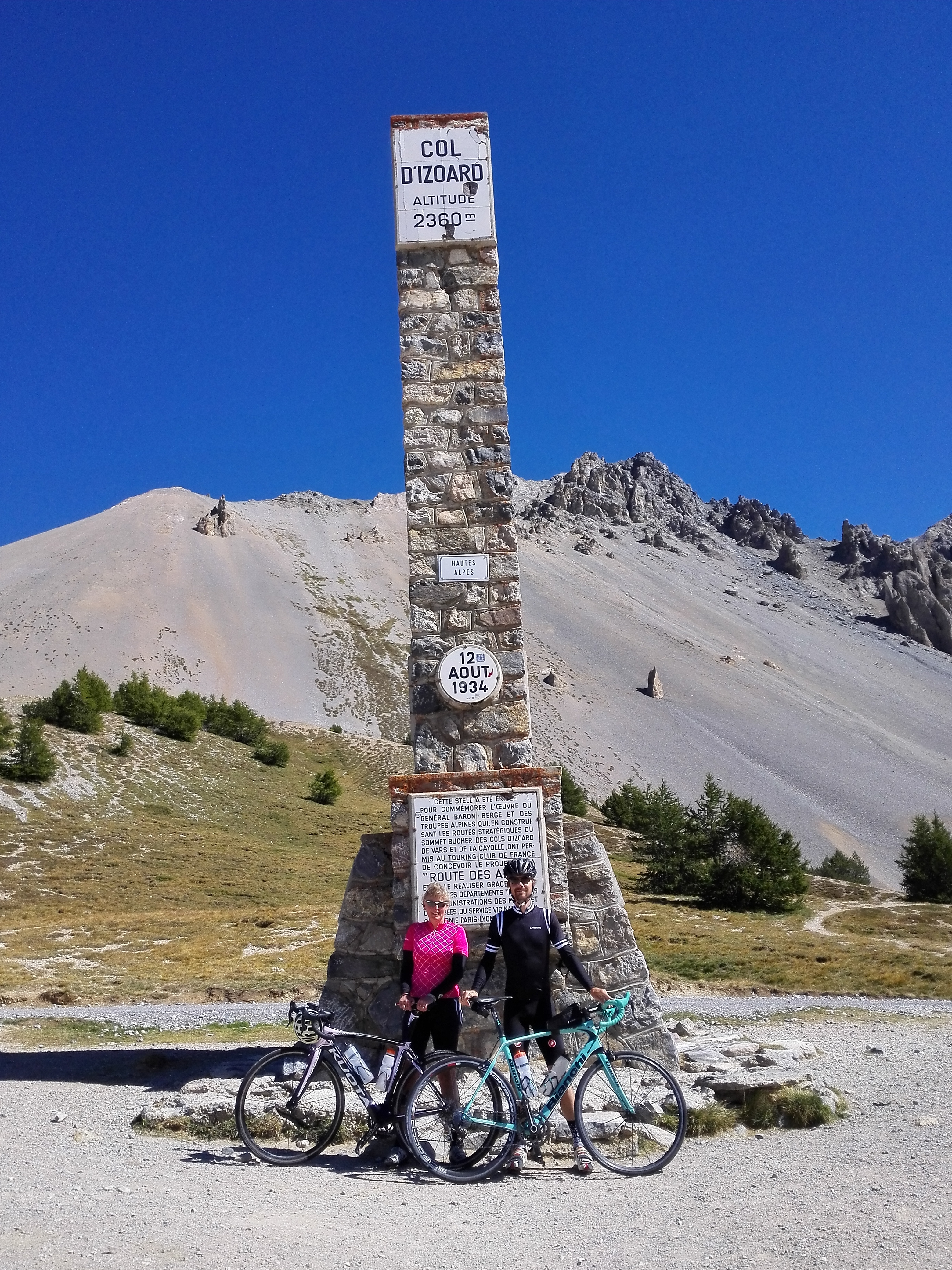 Ook in juli en augustus hebben we thuis niet zo veel gefietst. Gelukkig hadden we september nog; 4 weken vrij. We hebben de racefietsen op het fietsenrek gezet, de kampeerspullen in de auto geladen en zijn naar Frankrijk gereden. Eerst naar de Alpen, naar twee verschillende plaatsen. Daar hebben we een heel aantal bergen beklommen, waaronder de Galibier, Croix de Fer, Izoard en Agnel. De bergen blijven toch altijd een prachtige omgeving.