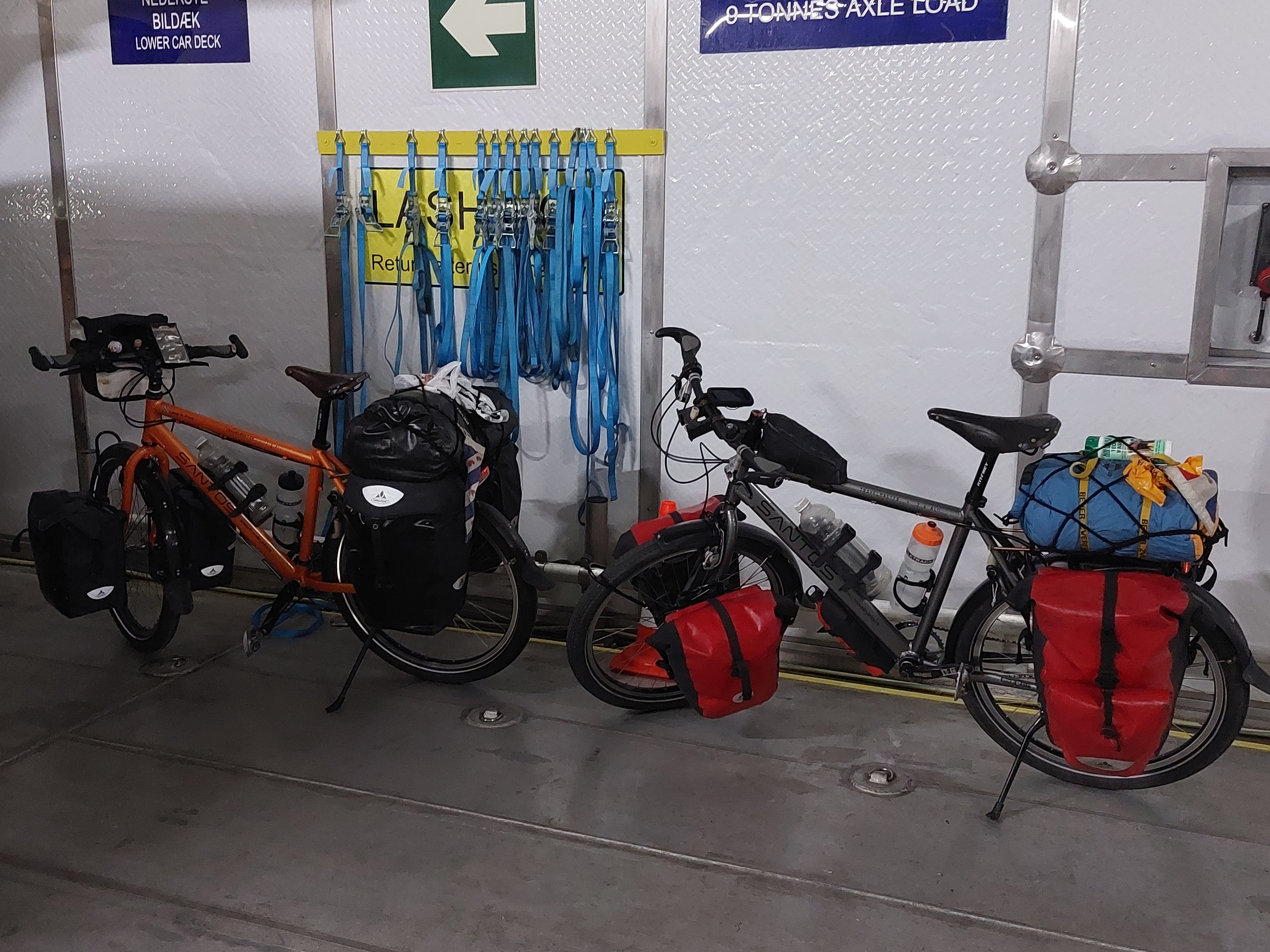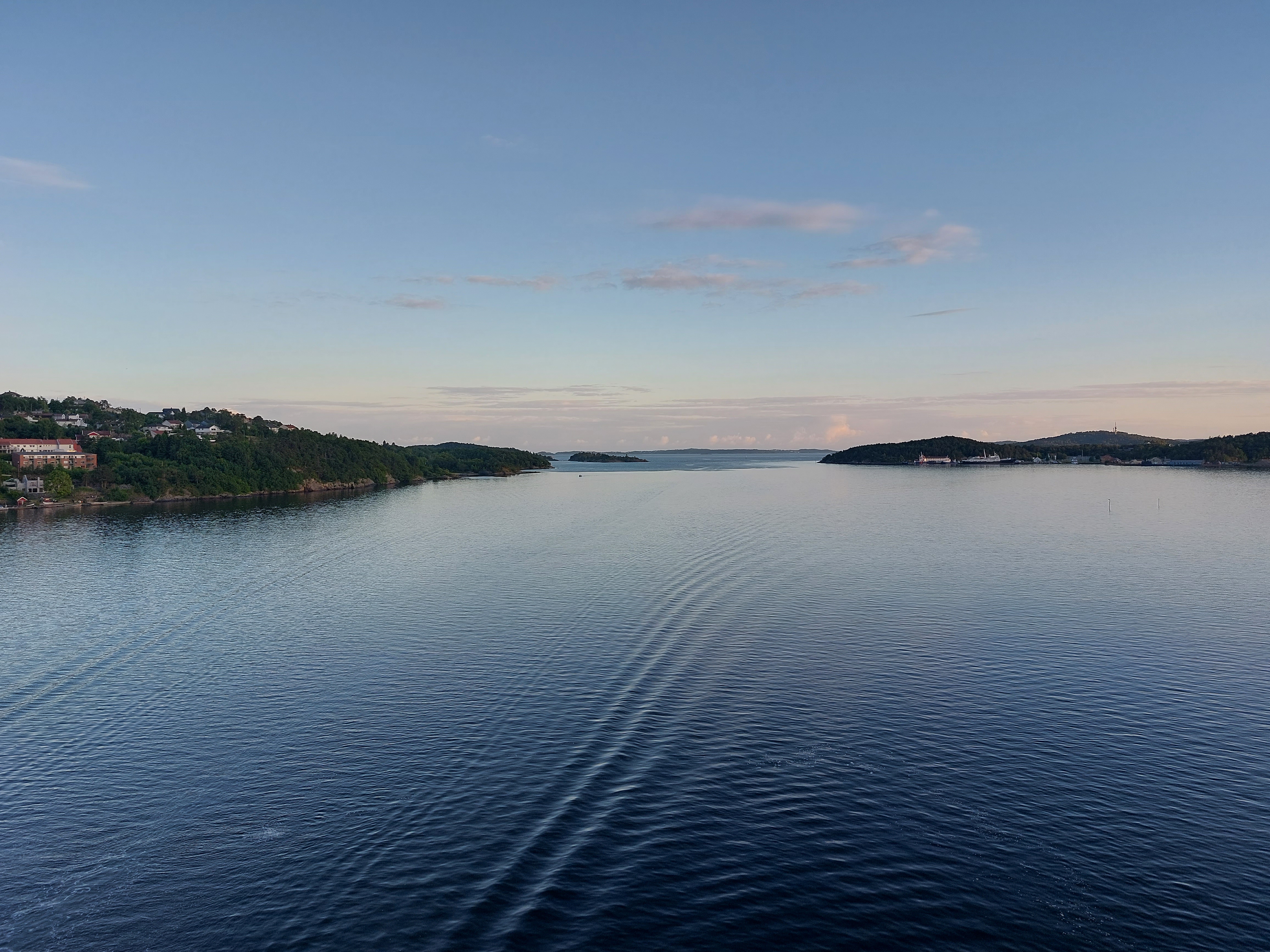We konden pas op zondag weg, maar dat betekende wel dat het wat rustiger op de weg was. We reden naar Hirtshals en parkeerden de auto daar bij een camping. Die konden we daar laten staan tegen een kleine vergoeding. We waren mooi op tijd voor de boot, we konden bijna meteen aan boord. Na een overtocht van maar 2,5 uur kwamen we aan in Kristiansand, waar we nog een paar km moesten fietsen naar ons hotel. We hadden besloten om luxe te beginnen en hadden daarom voor de eerste nacht een hotel (met ontbijt) geboekt.