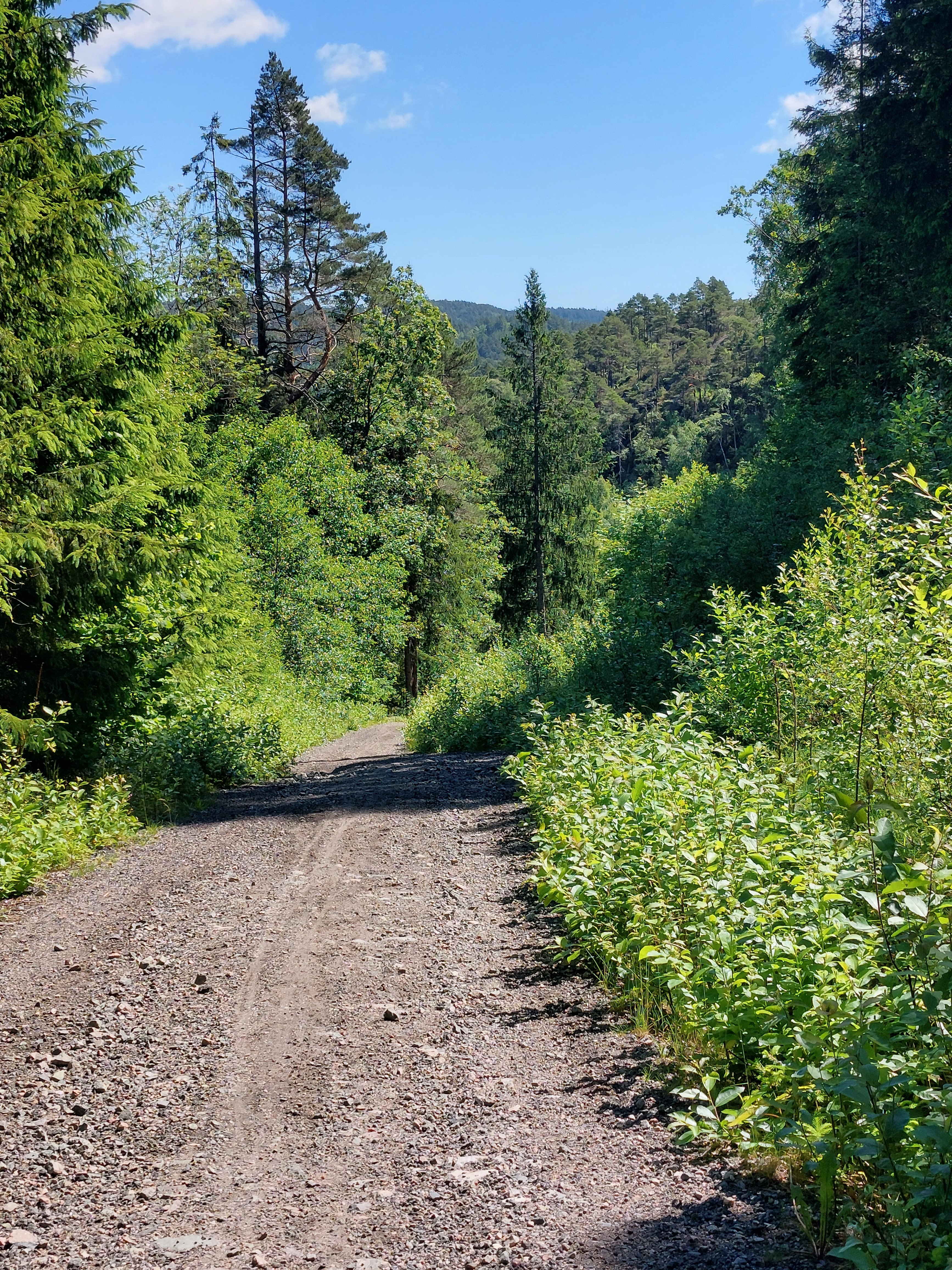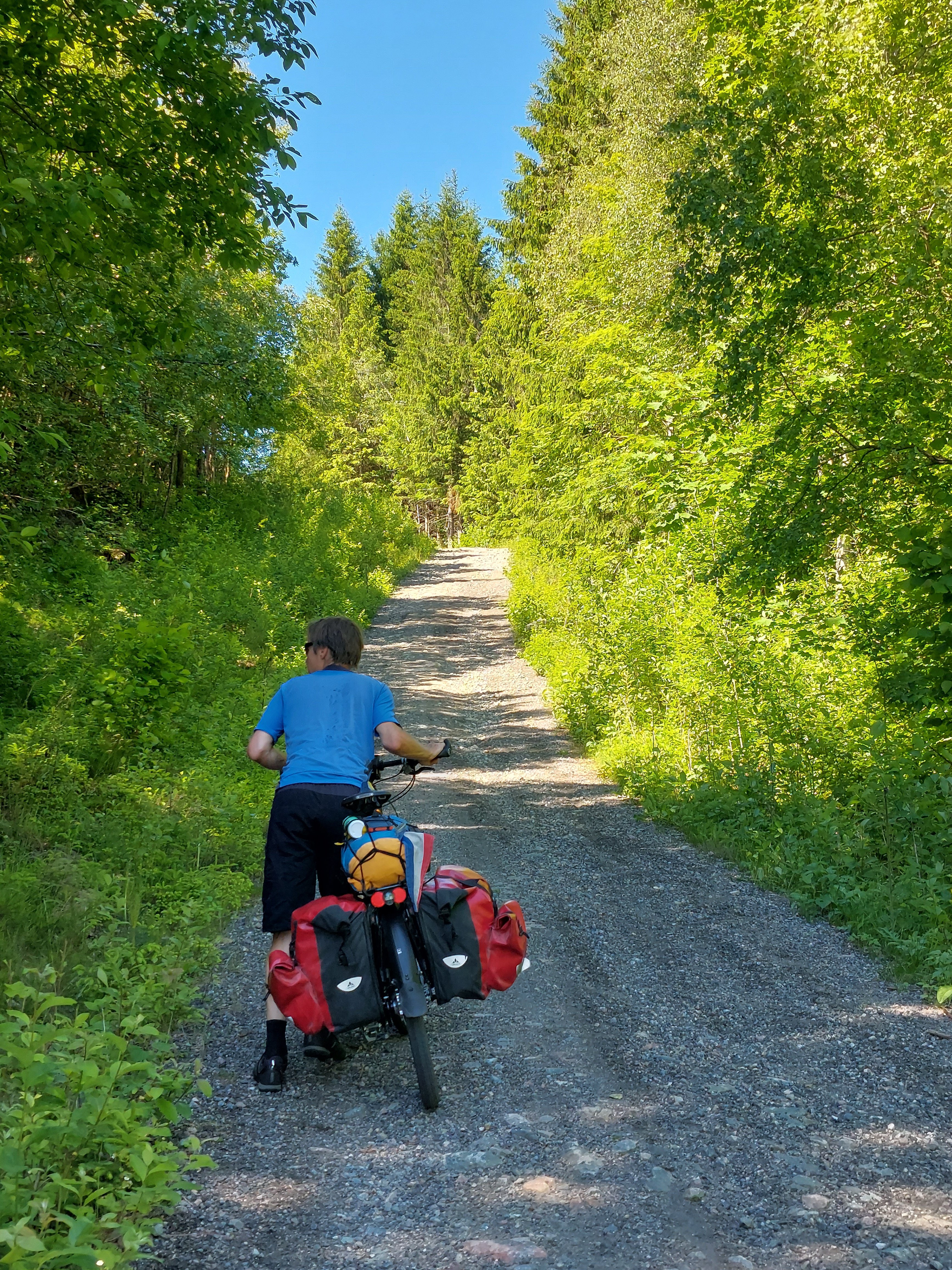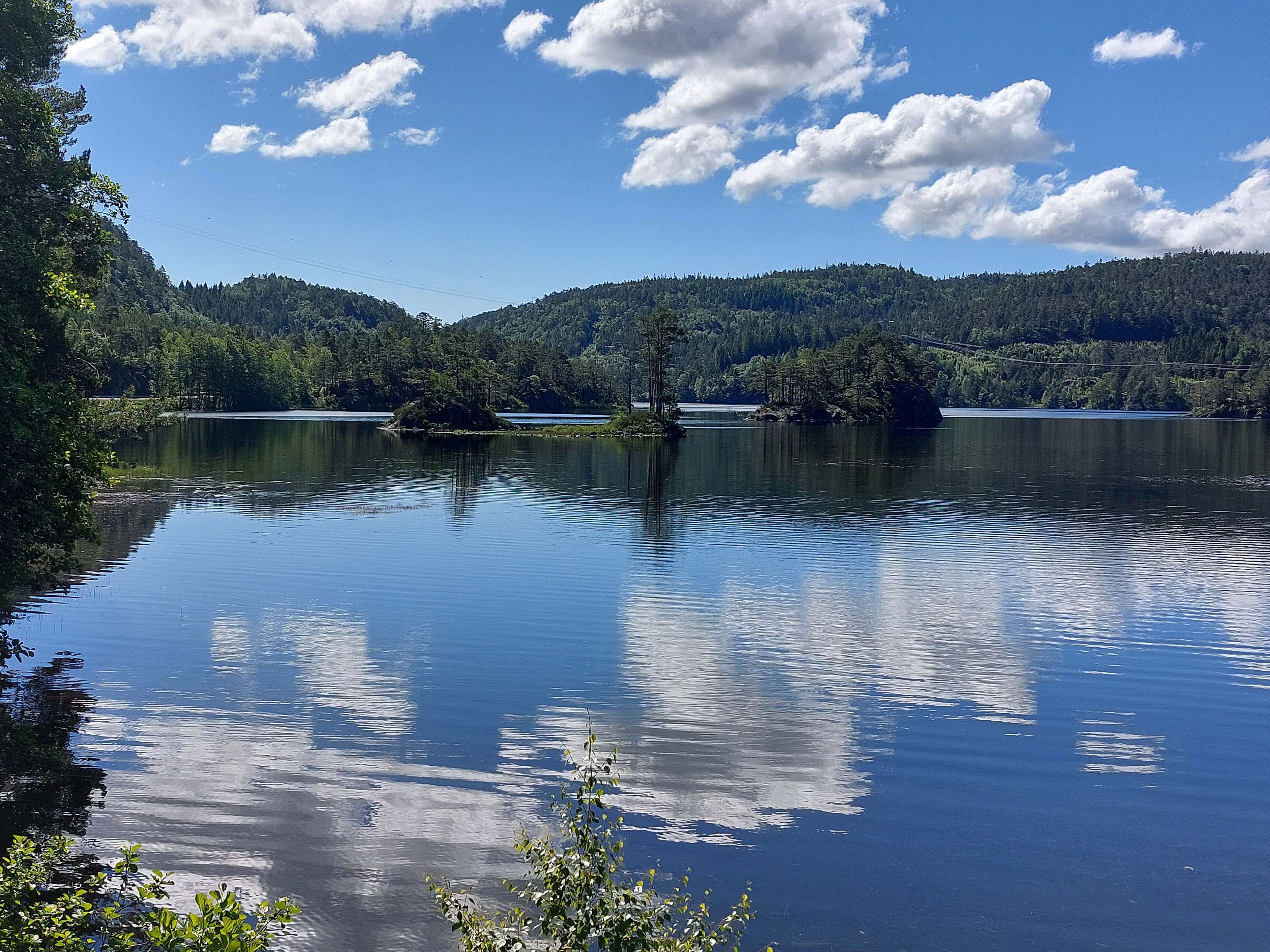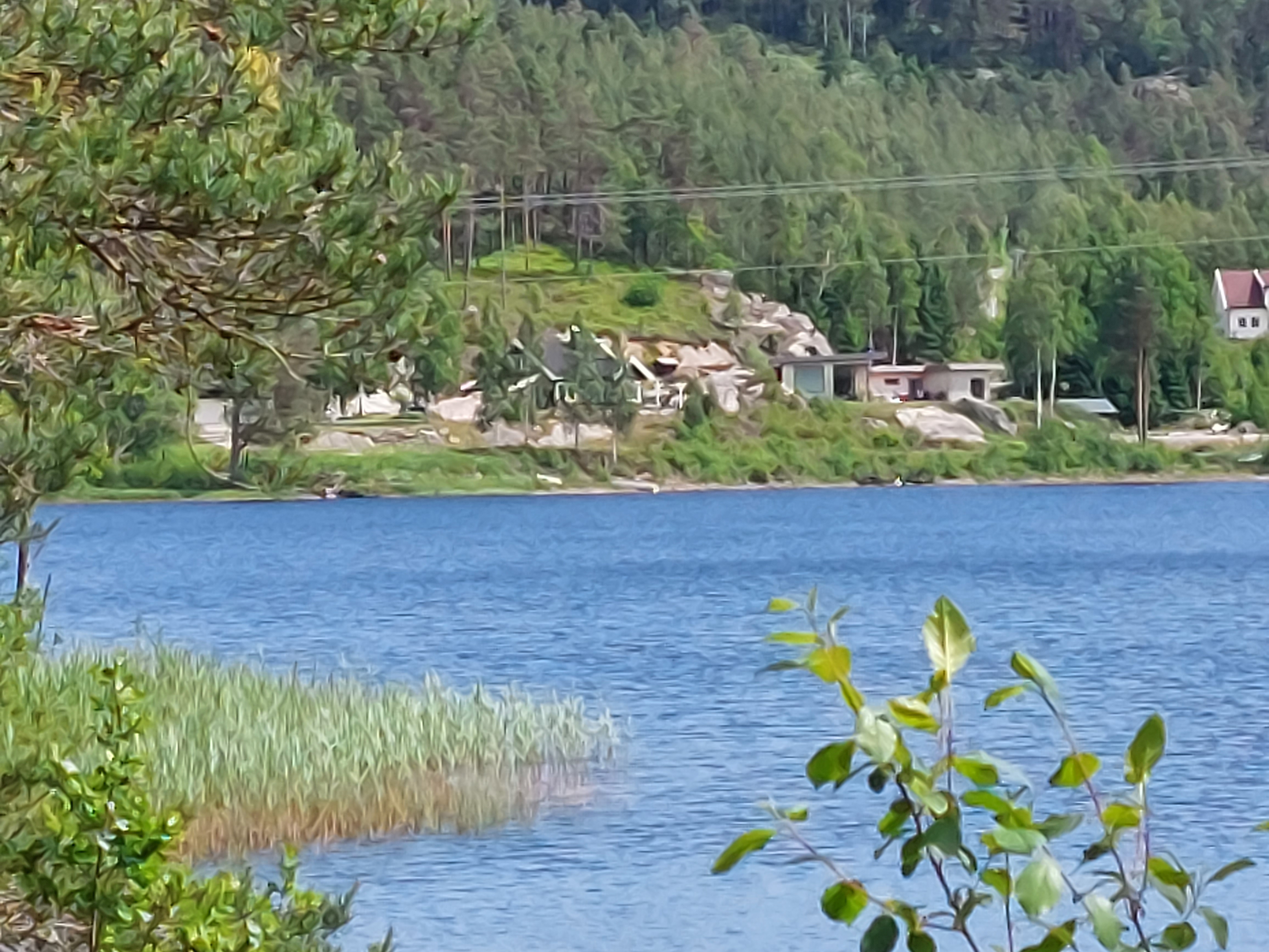 De volgende dag scheen de zon volop en was het al vroeg heerlijk warm, dus het was een goede start van onze vakantie. Na het ontbijt zijn we op de fiets gestapt. We hadden een route gevonden met een stuk onverhard, dus dat begon al meteen goed. Maar het bleek een heel zwaar stuk te zijn. Zowieso is in Noorwegen heel weinig echt vlak en dat was hier dus ook niet zo. Het onverharde stuk had hele steile stukken die we moesten lopen. Dat begon dus al goed…. Toen we na zo’n steil stuk duwen boven waren en lichtjes naar beneden gingen lette Linda niet helemaal goed op en ging onderuit. Schaafwonden op armen, schouder en benen en wonden op elleboog en boven het oog. Het oog was ook meteen helemaal dik. Dat zag er dus niet zo goed uit. Dus we besloten om terug te gaan naar Kristiansand om die wonden te laten verzorgen in een ziekenhuis. Dat betekende wel nog ongeveer 20 km fietsen, maar het was niet anders.
