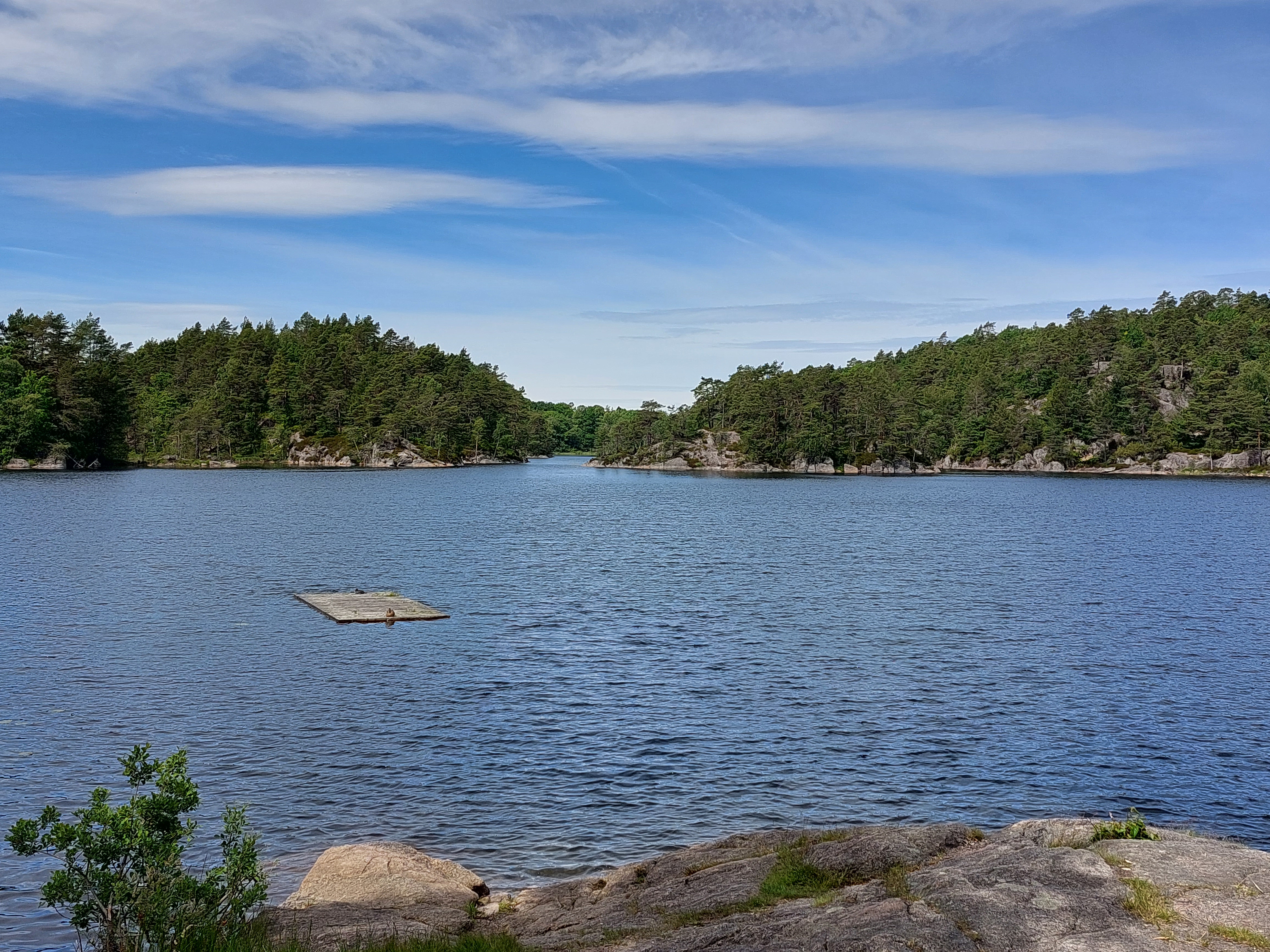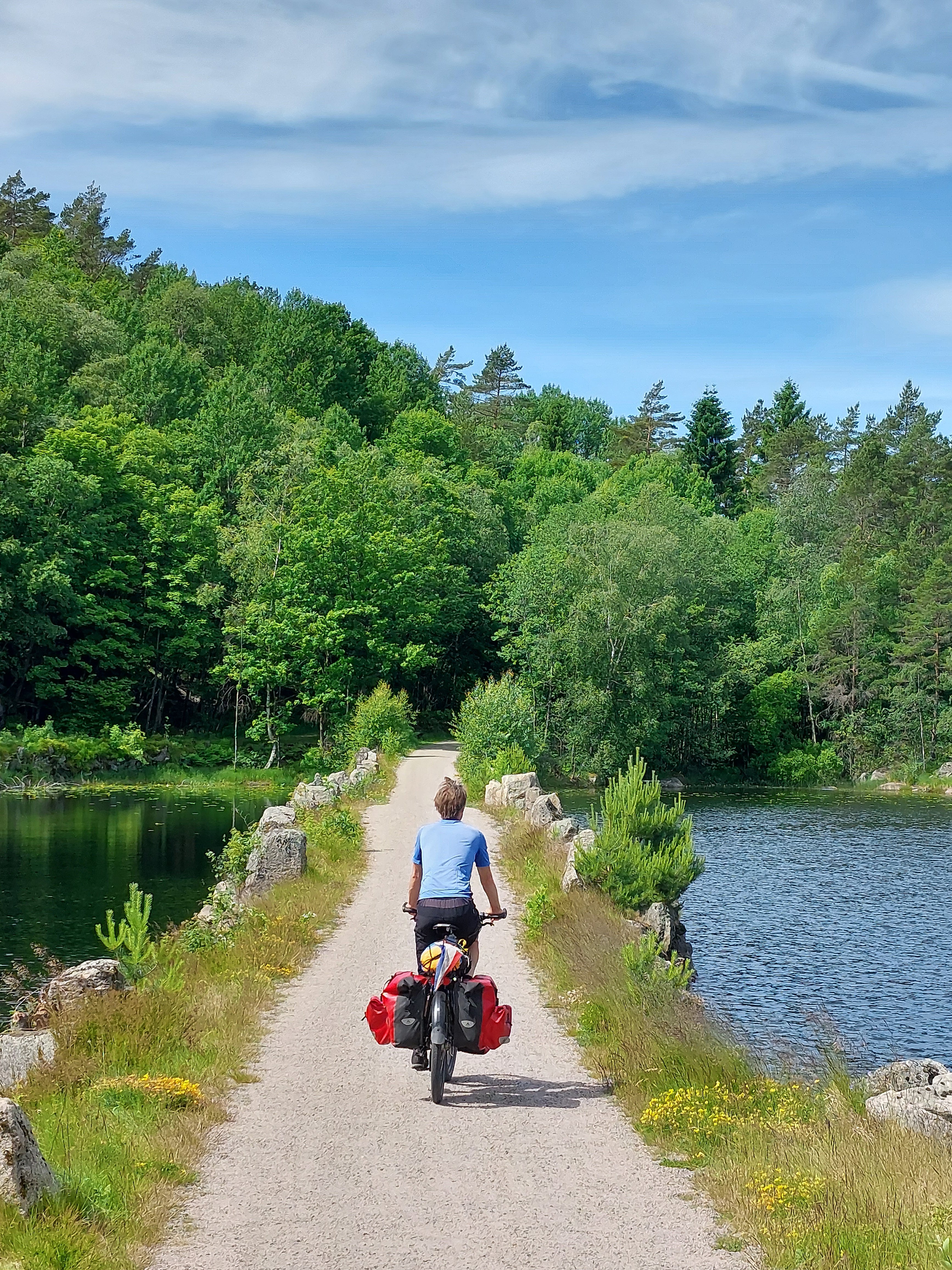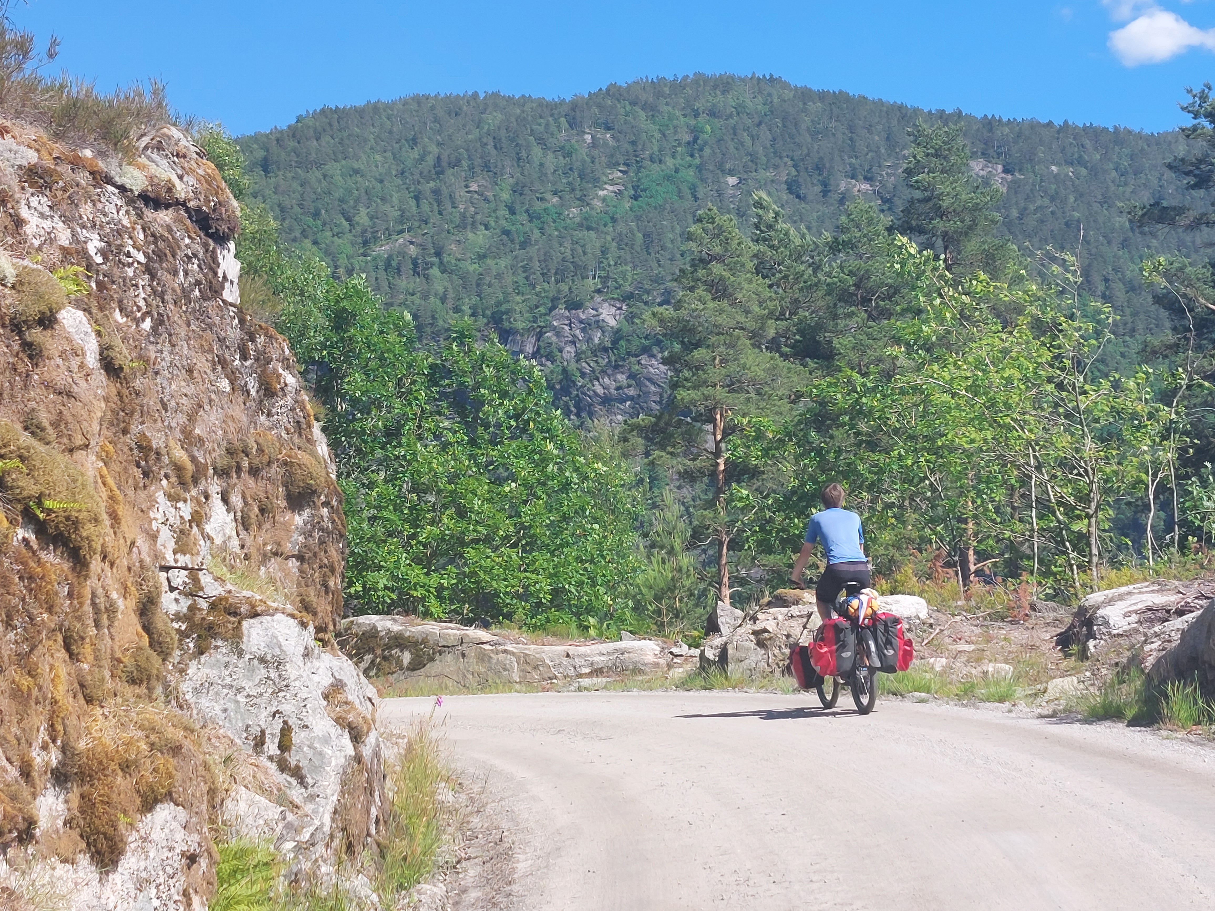 De dagen daarna was het weer weer goed en we fietsten in 4 dagen naar Helgeroa, vlak bij Langesund en Larvik. De omgeving was in het begin nog erg heuvelachtig, maar werd wel steeds vlakker en we kwamen ook steeds lager. Als je dan weer op zeeniveau fietst is het moelijk om voor te stellen dat je een paar dagen daarvoor nog op/boven de 1000 meter zat. De laatste dag moesten we nog een klein stukje naar Langesund vanwaar we de boot namen naar Hirtshals. Daar stond de auto nog op ons te wachten en na een laatste nacht kamperen reden we weer terug naar huis.