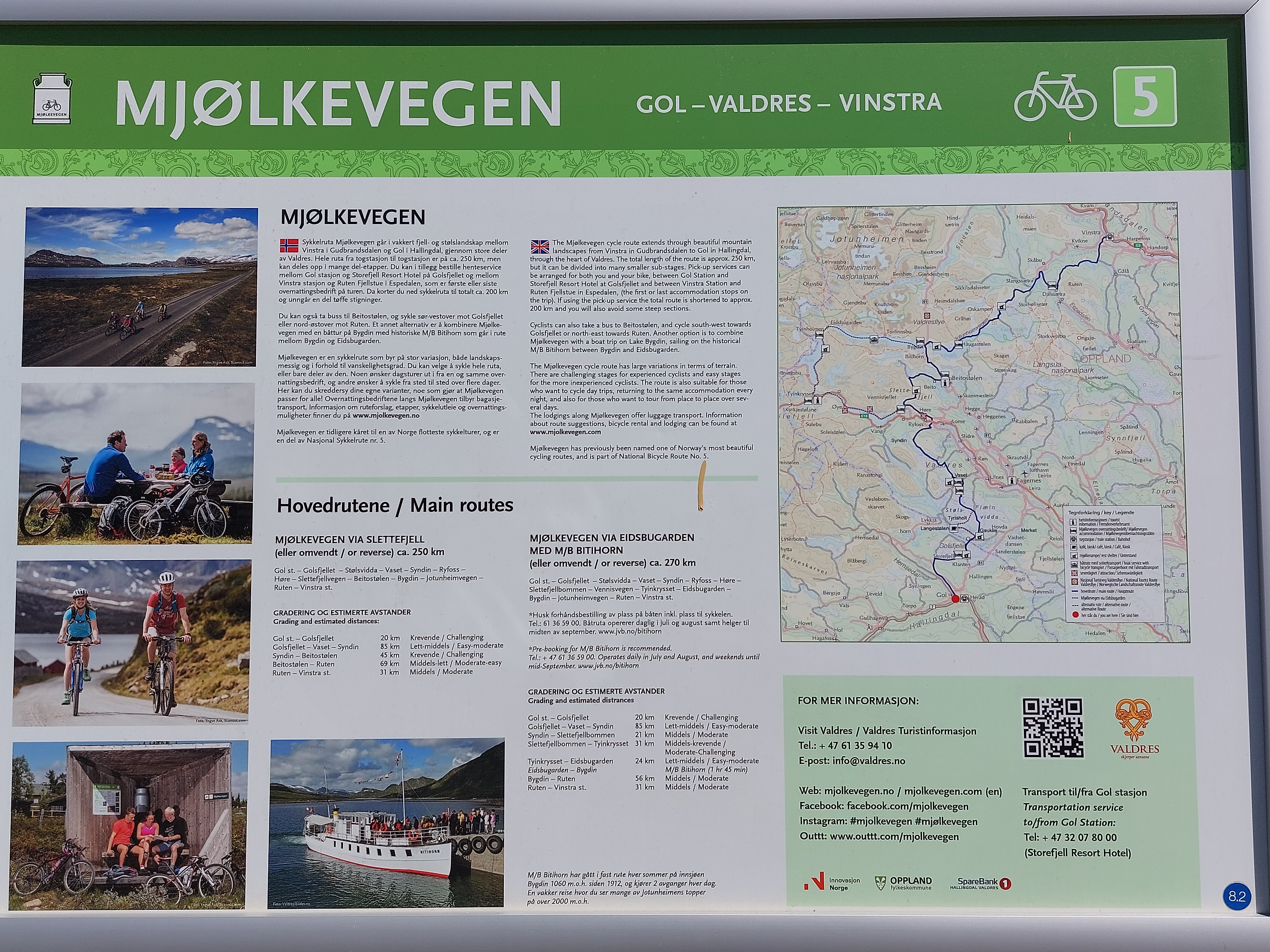 In Gol (niet ver van Geilo) begint een bekende fietsroute, Mjolkevegen. Een bijna helemaal onverharde route van 250 km die dwars door het gebied Valdres gaat. Die route werd vroeger gereden door de melkauto om de melkbussen van de boeren langs de route op te halen. De route is grotendeels onverhard en gaat door prachtige natuur en langs veel kleine (vroegere) boerderijtjes en vakantiehuisjes. Het eerste deel gaat van Gol naar Beitostolen. Daarna is de route gelijk aan Jotunheimvegen, tot aan Vinstra.