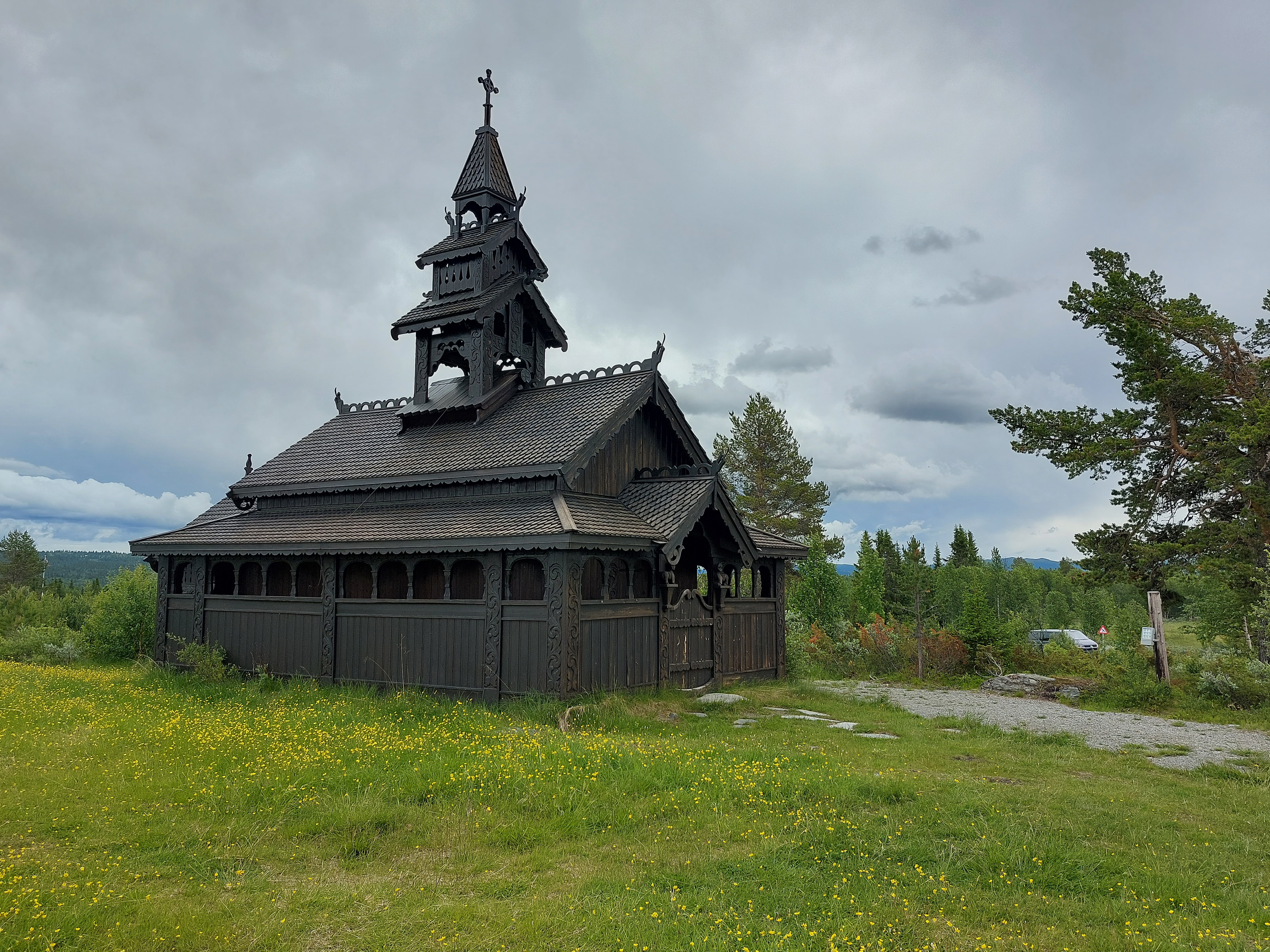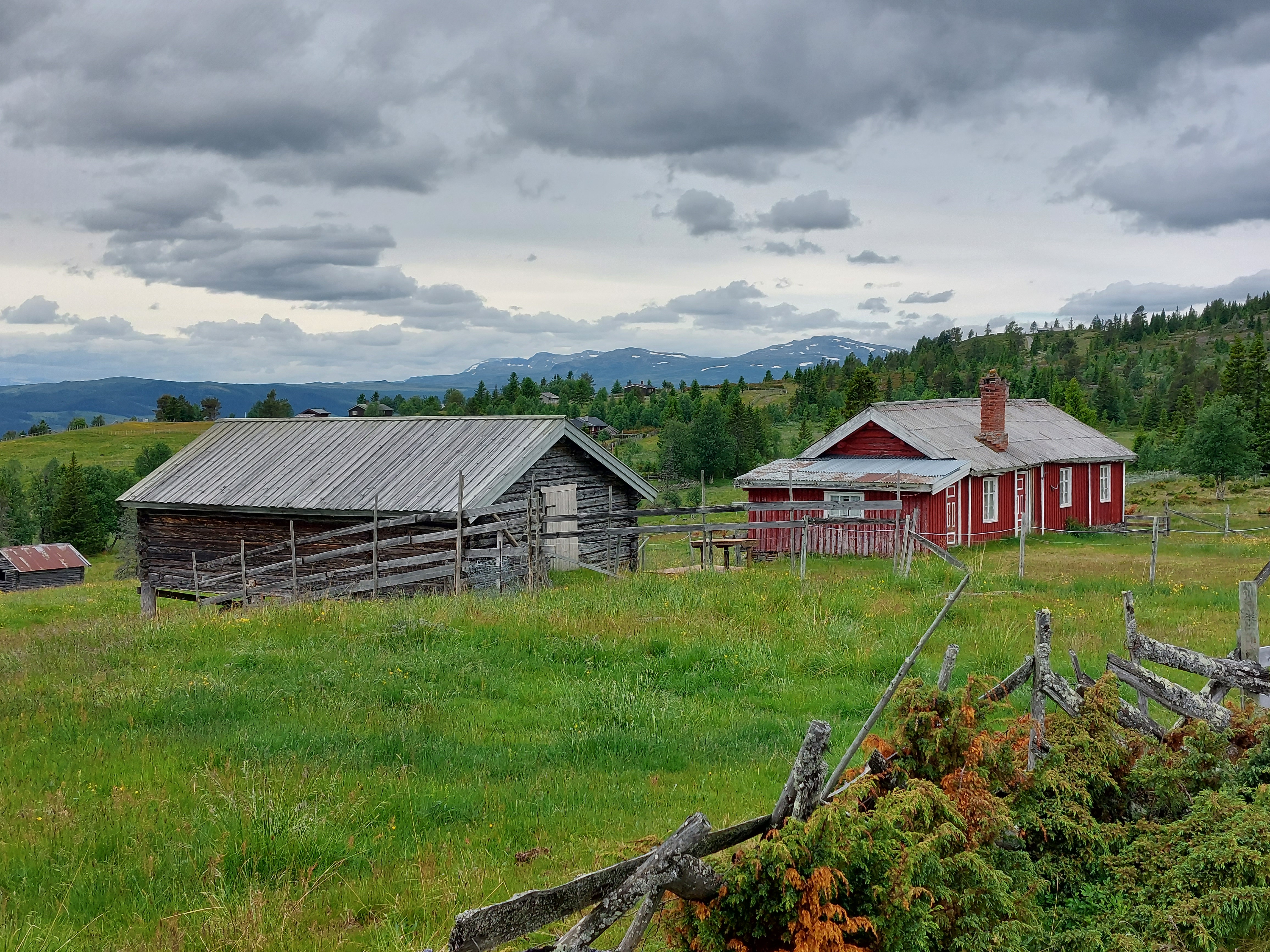 Vanaf Beitostolen volg je Jotunheimvegen. Dat is ook een (bekende) onverharde route die we ook al een keer eerder gereden hadden. Ook deze route gaat weer door de natuur en over (soms heuvelige) hoogvlaktes. Helaas was het gedaan met ons geluk om de regen voor te blijven. Net toen we na een lange klim boven kwamen begon het toch echt te regenen. En het werd ook niet meer droog. Gelukkig hadden we het meeste klimmen al gehad en ging het meeste vanaf daar naar beneden. We wilden eigenlijk een mooi wildkampeer plekje zoeken langs de route, maar door de regen hebben we daar maar vanaf gezien. In Skabu hebben we een camping opgezocht waar we lekker binnen konden zitten en konden opwarmen onder een warme douche.