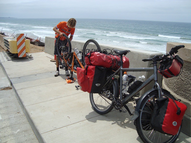 And then we really were on our way; a new country with new experiences. The next real stop would be San Francisco, so our focus was on getting there. It didn’t take long for us to get our first flat tire, caused by a huge nail which would have punctures every tire. Fortunately we could change the innertube whilst enjoying a great view.