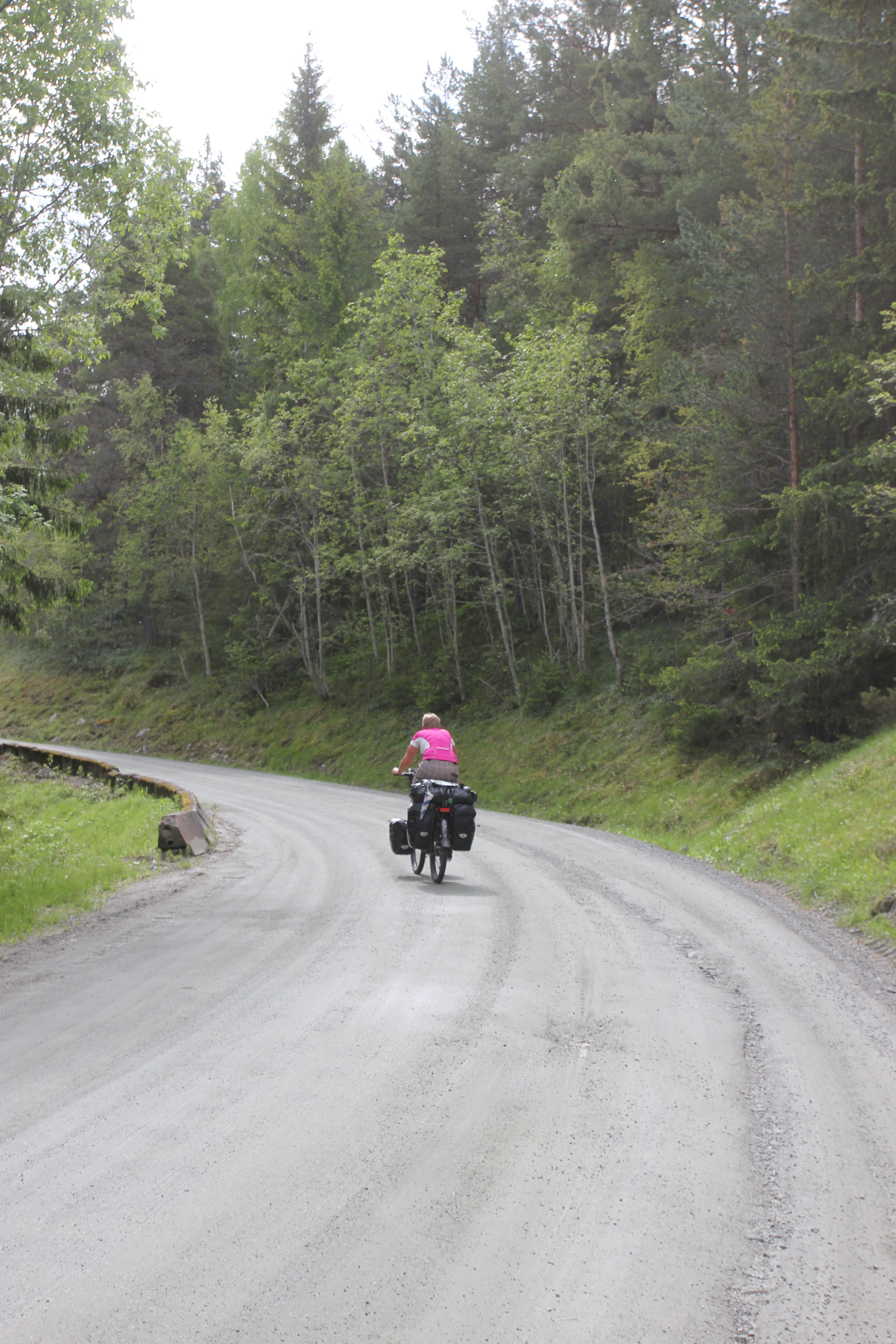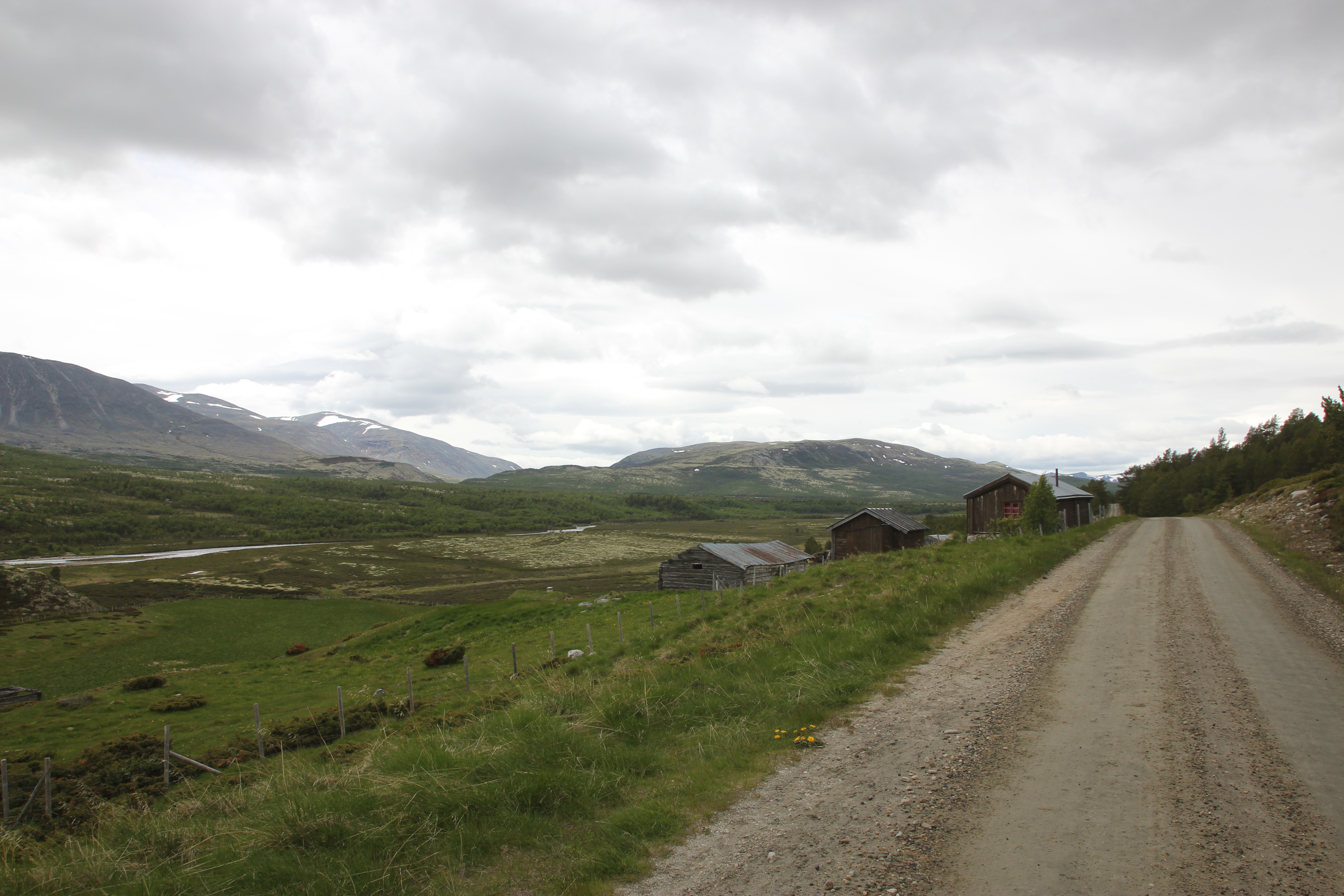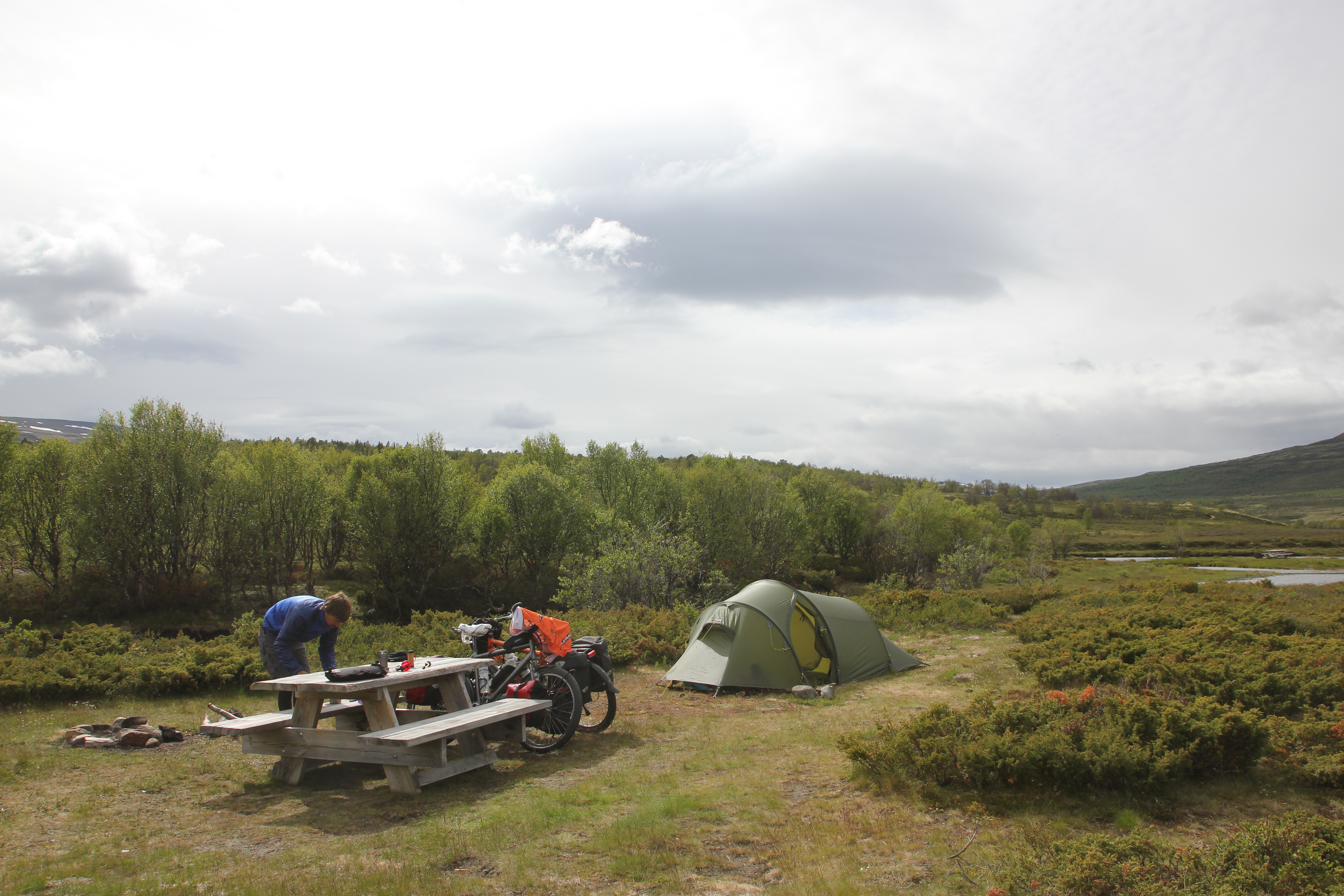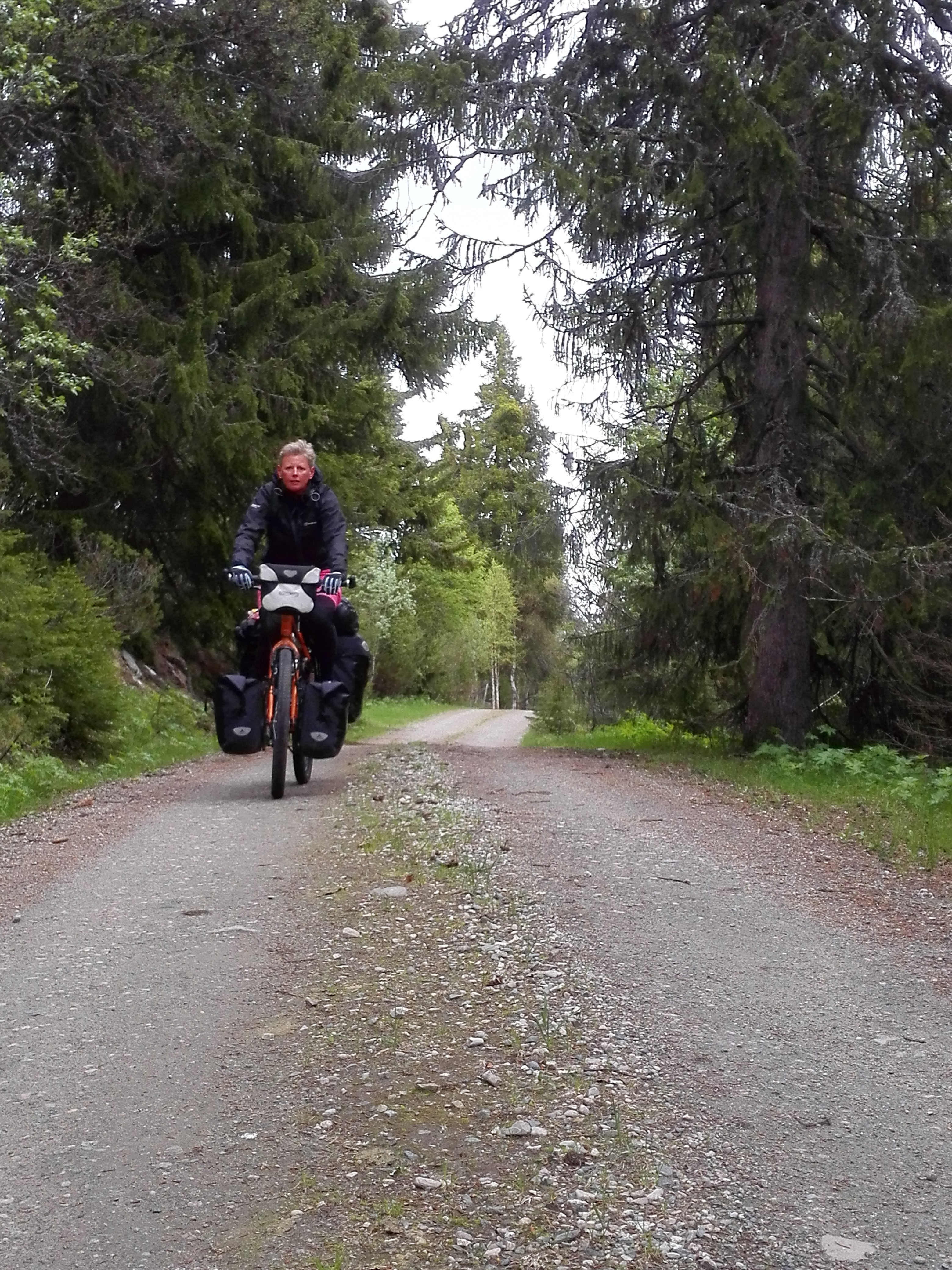 Through mostly unpaved roads, part of which an old toll road, we arrived in Alvdal. Then we had a short day with a bit of (unexpected) mountainbiking because the route we wanted to take turned out to be a mountainbike path, because we found a good camping spot on the highlands, next to yet another toll road.