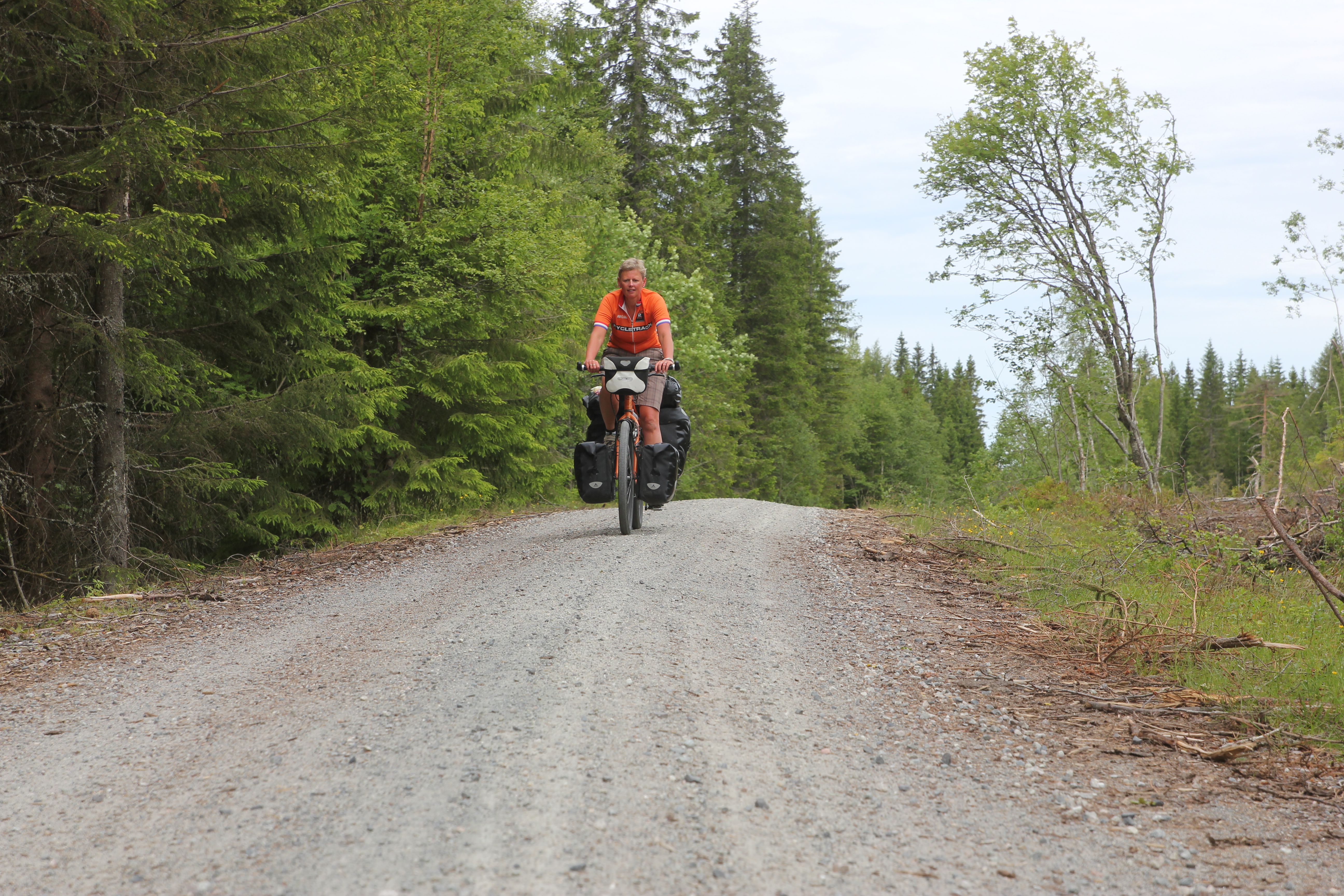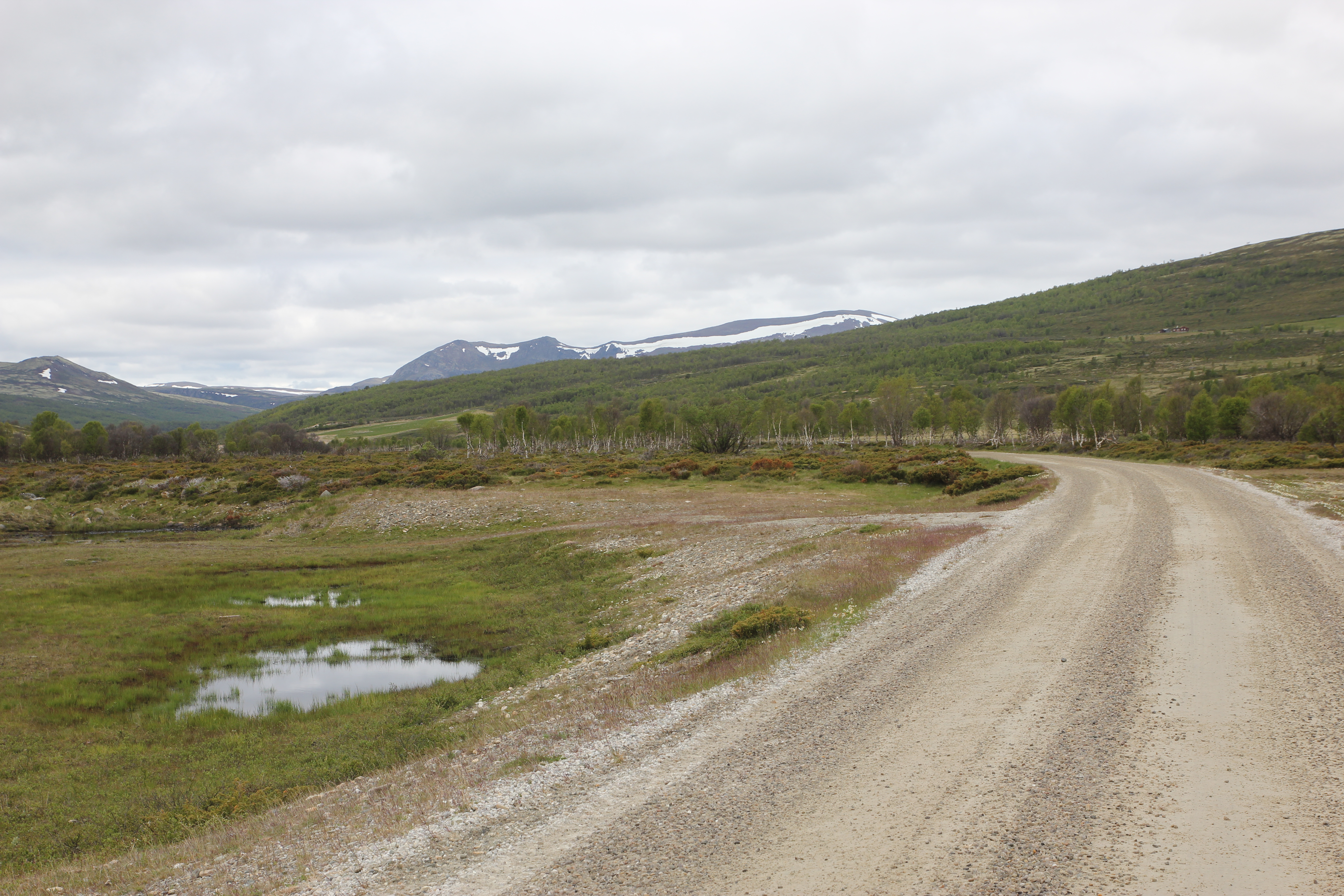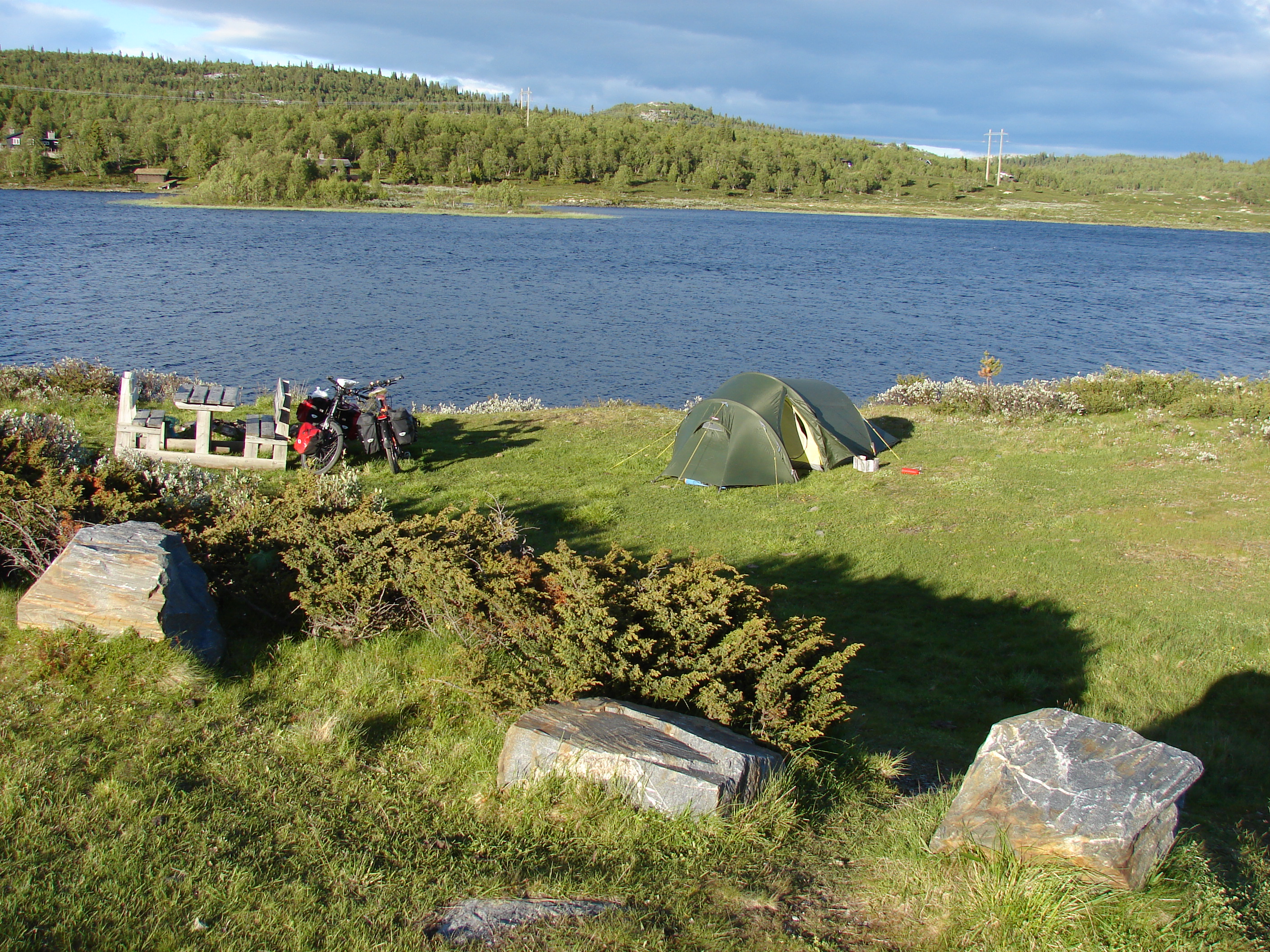 Through mostly unpaved roads, part of which an old toll road, we arrived in Alvdal. Then we had a short day with a bit of (unexpected) mountainbiking because the route we wanted to take turned out to be a mountainbike path, because we found a good camping spot on the highlands, next to yet another toll road.