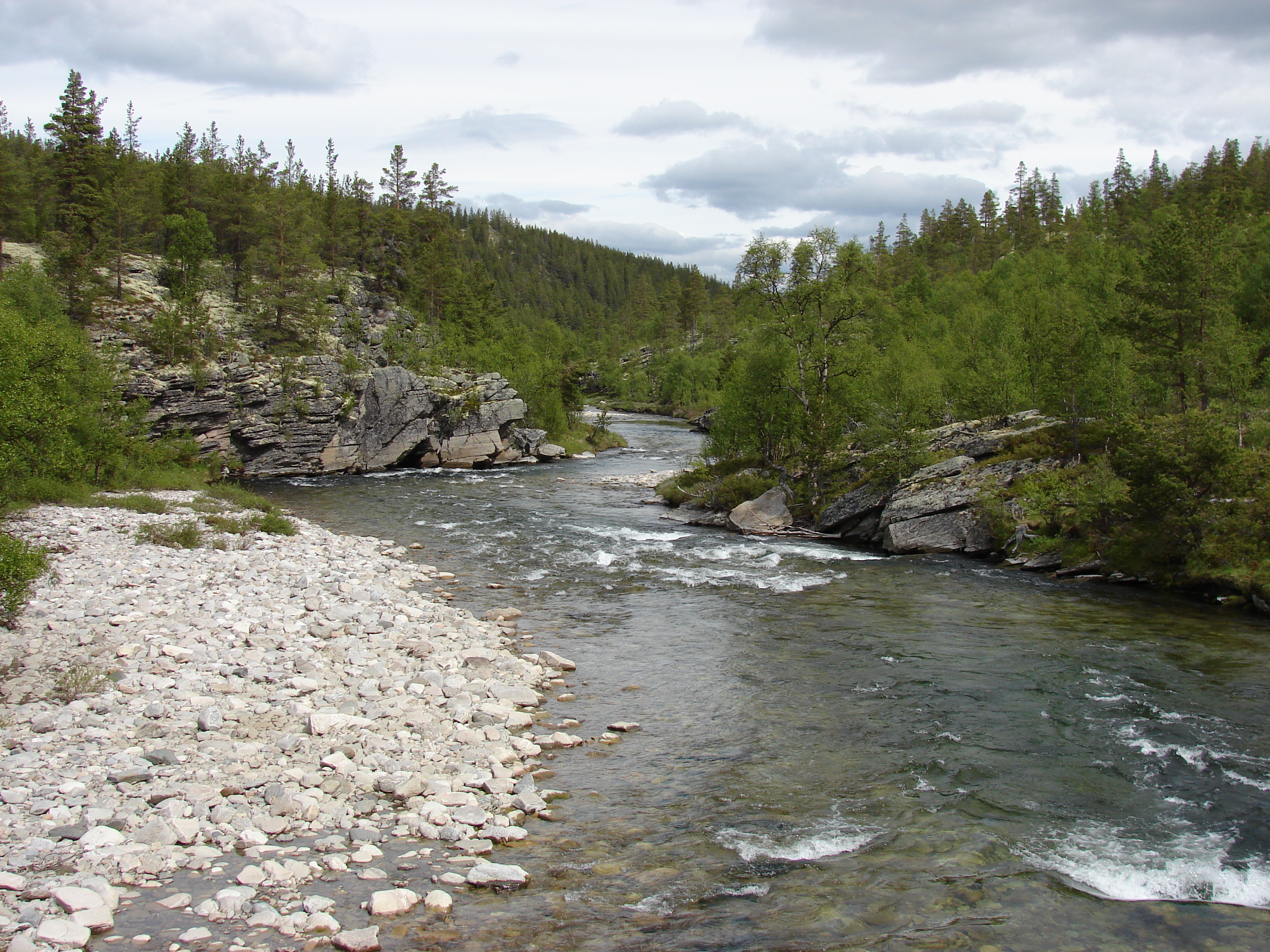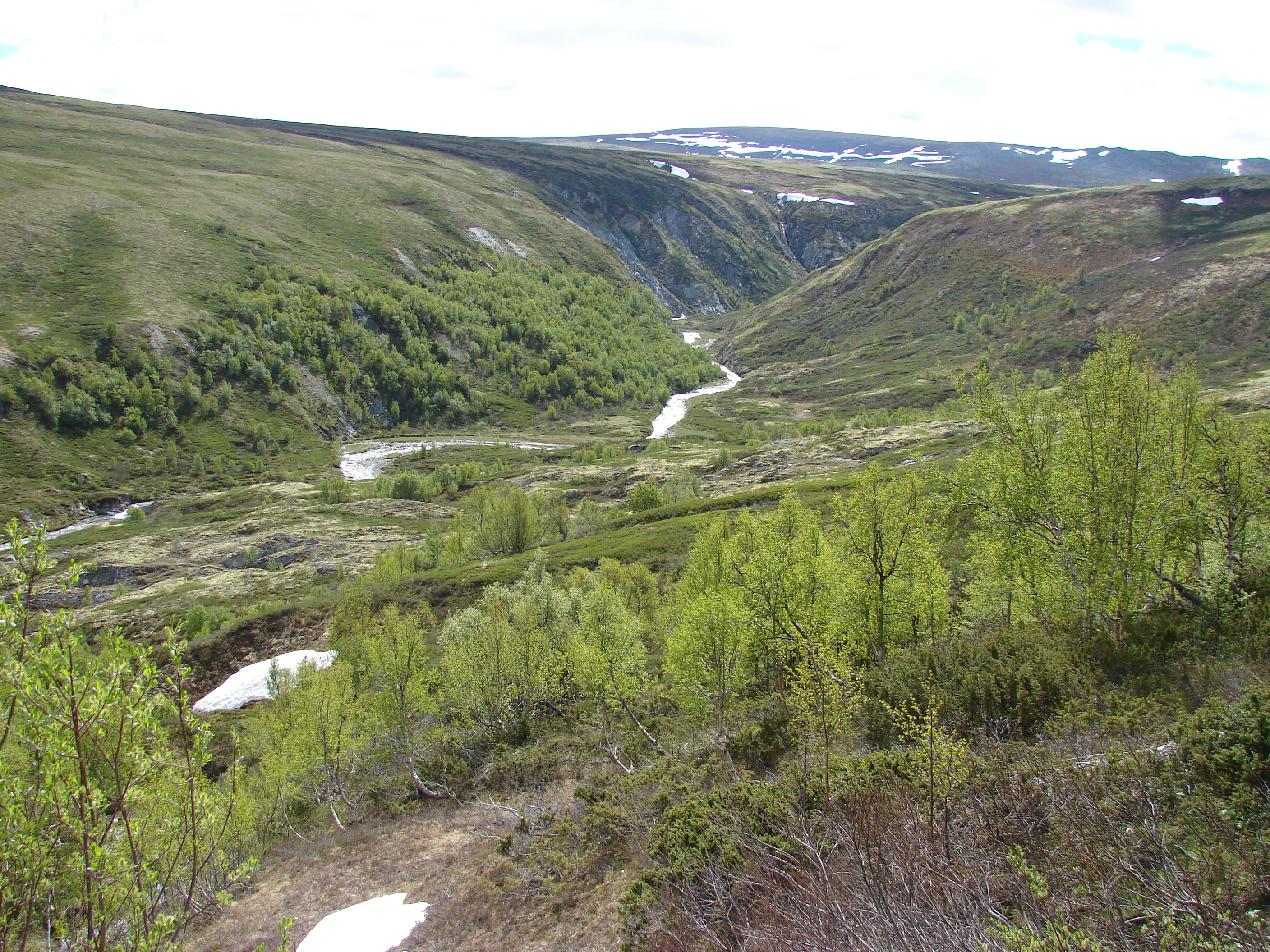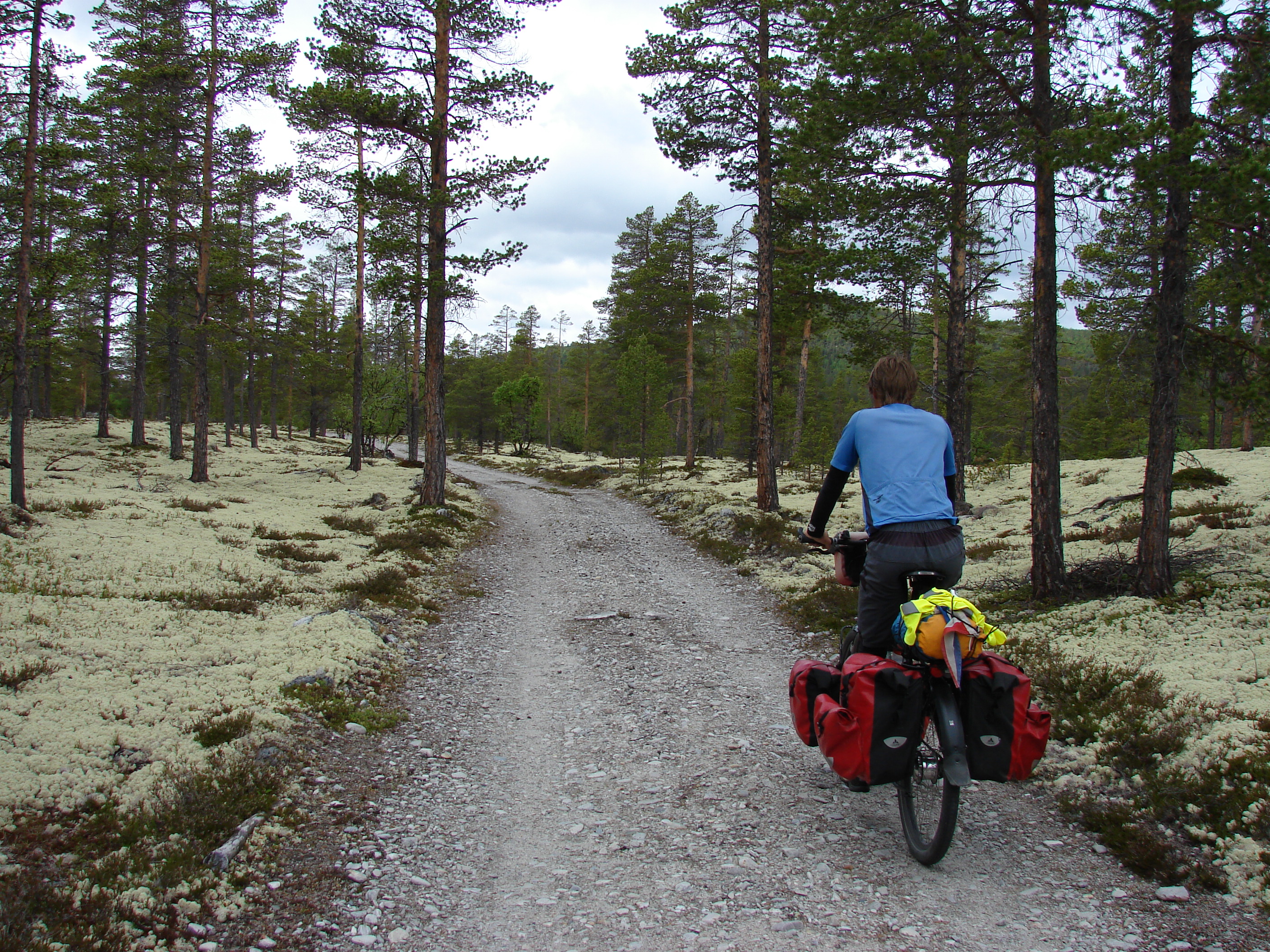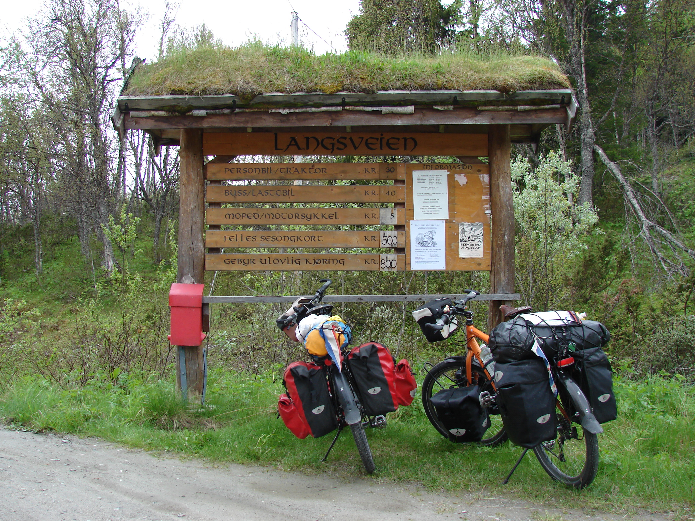Through mostly unpaved roads, part of which an old toll road, we arrived in Alvdal. Then we had a short day with a bit of (unexpected) mountainbiking because the route we wanted to take turned out to be a mountainbike path, because we found a good camping spot on the highlands, next to yet another toll road.