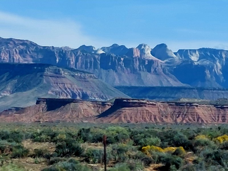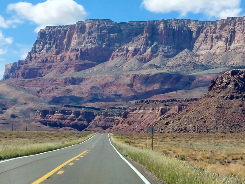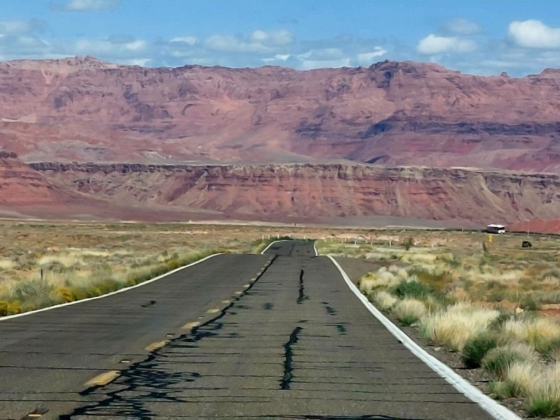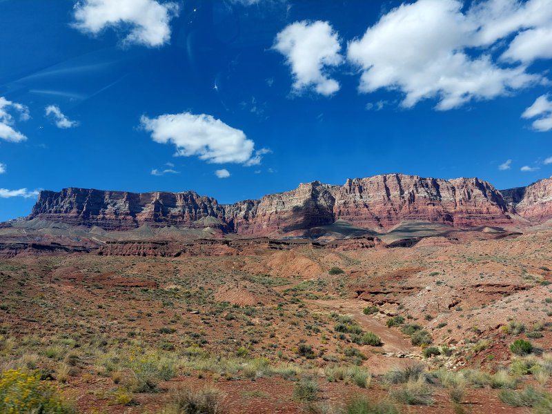 We drove back to Flagstaff and after another night in town, we drove North. We saw one rock formation after another, the whole area exists of rocks and canyons. Through Marble Canyon/Glen Canyon we drove to Grand Canyon North Rim. We didn’t have enough time to drive all the way to the rim, but we did watch the canyon from the east side. The North Rim is about 300 meters/ 1000 ft higher than the South Rim, where we were just a few days earlier, and the scenery is very different on that side. There are different types of trees and vegetation and there are meadows where bizon graze. Unfortunately, we didn’t see any of them.