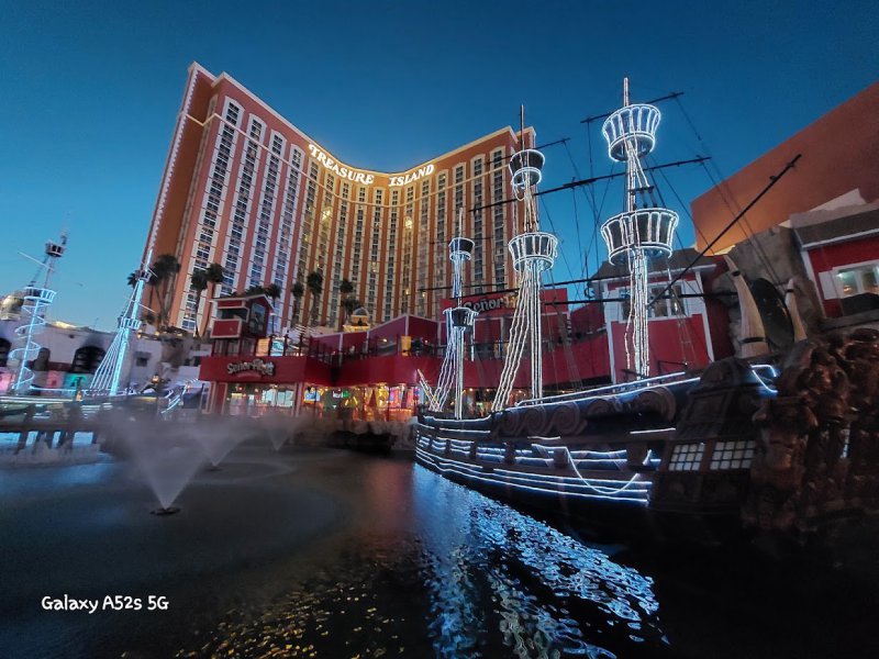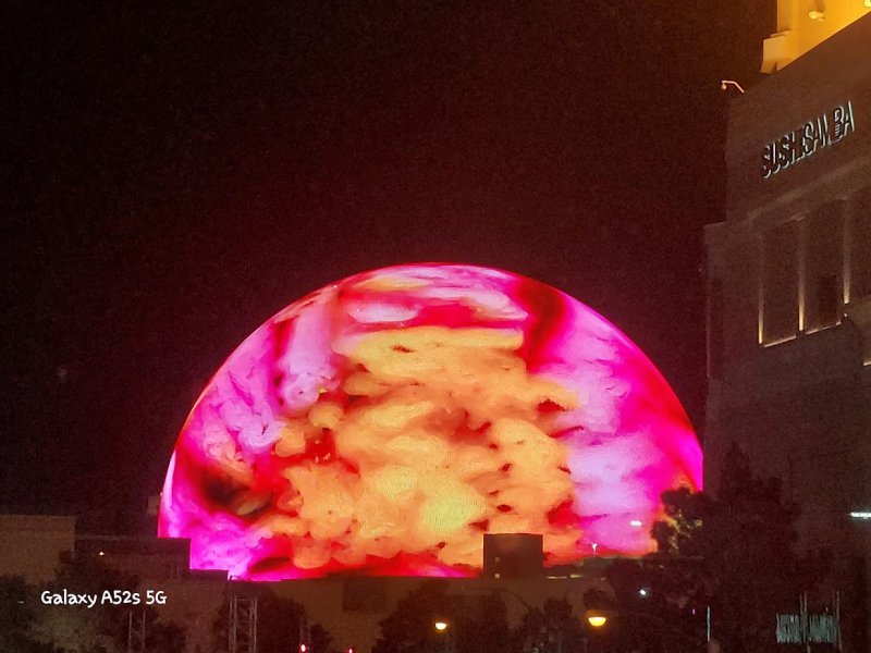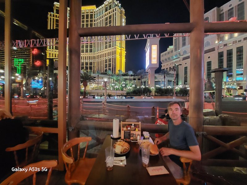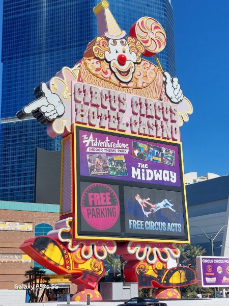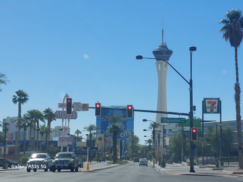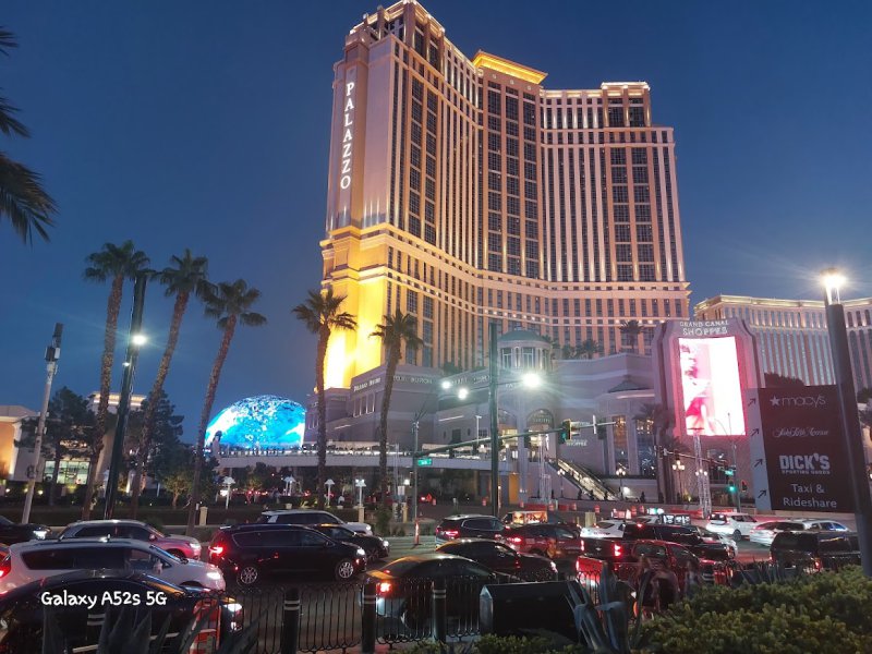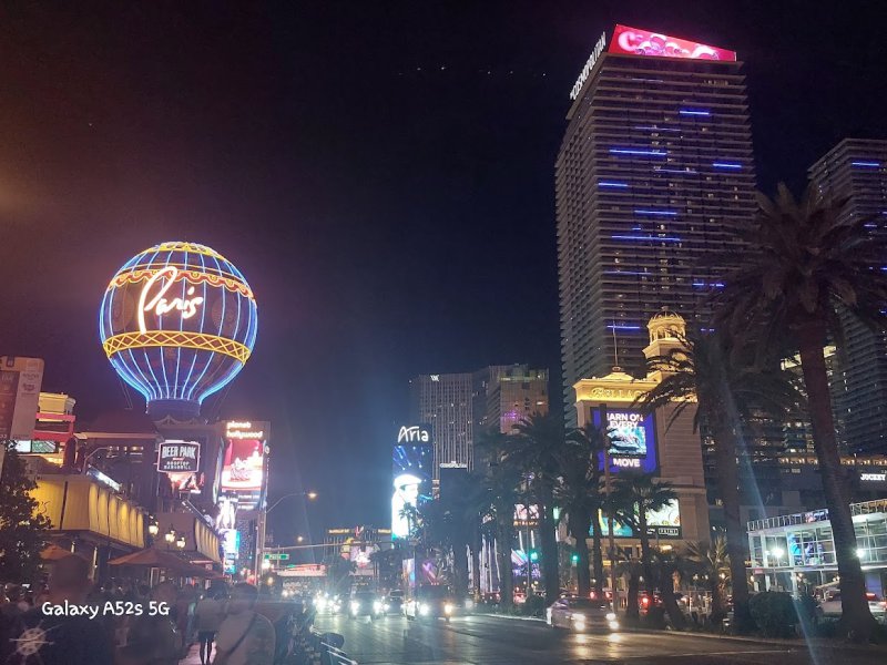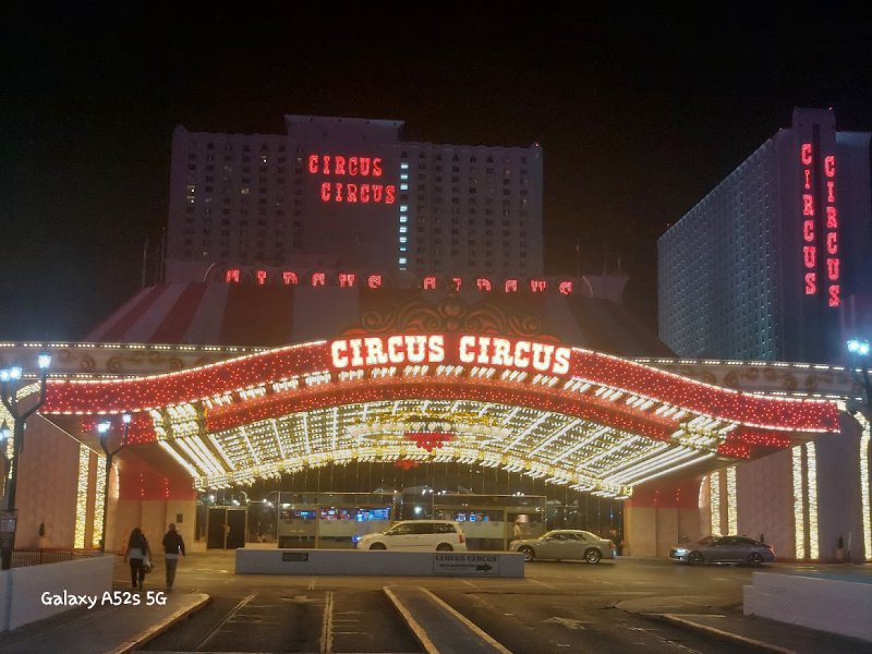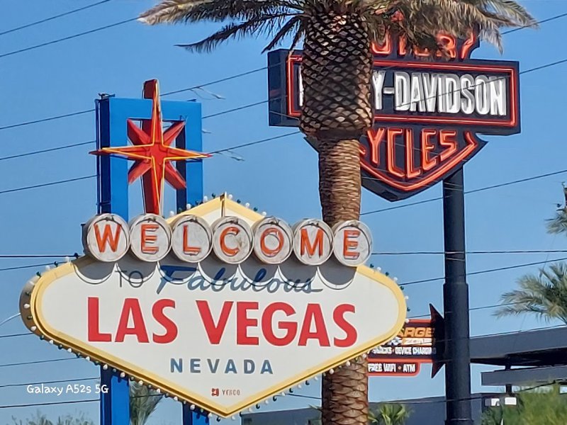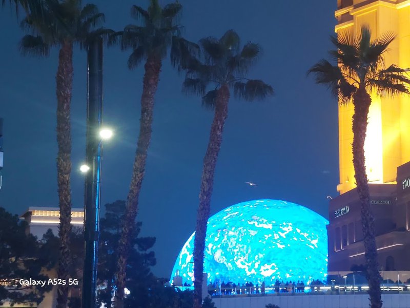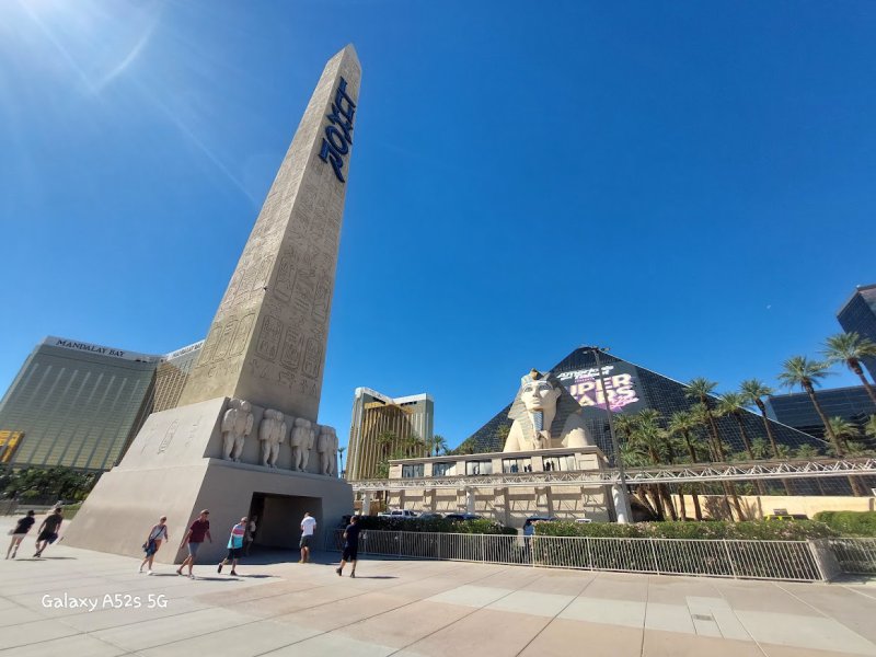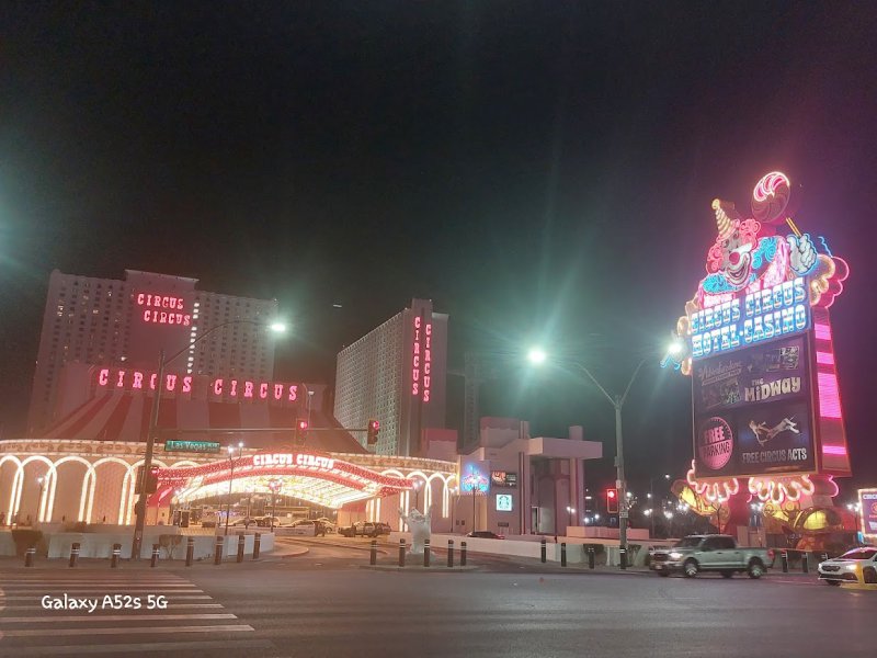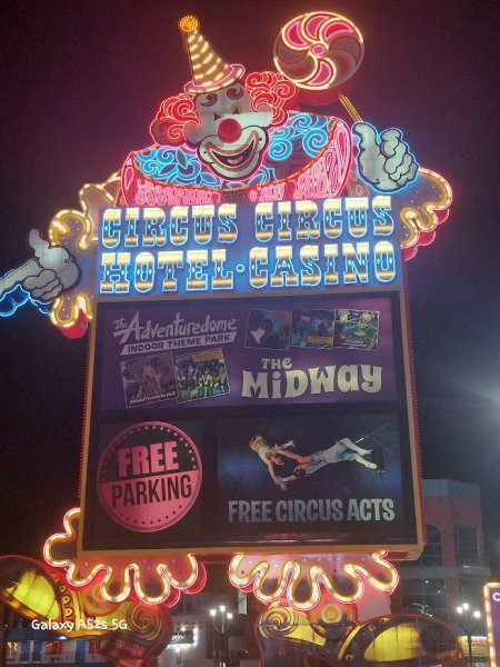 It wasn’t far to the city, so we arrived there around noon. We booked a room in the Circus Circus hotel, an older hotel with more than 3400 rooms. The room was cheap, but fine and we had a nice view on part of the strip and on the beautiful ‘Sphere’, where constantly different colors and images are projected. That evening we walked the strip back and forth to watch all the hotels en lights. Because the city was in full preparation of the F1 Grand Prix, a lot was fenced off and you couldn’t go to some places. The fountains of the Bellagio were just visable inbetween the partially contstructed bleechers.