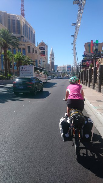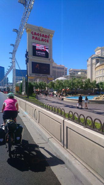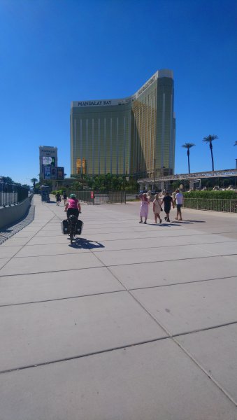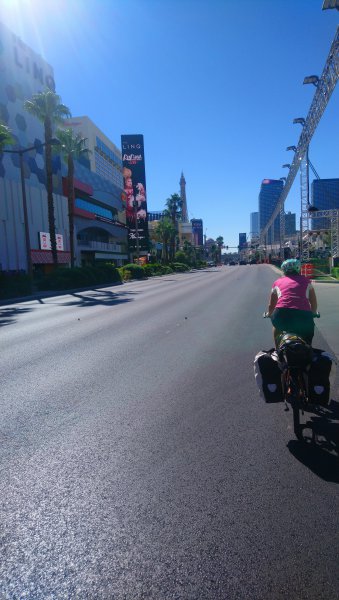 The next day we rode on the strip to our next location. After all the crazyness of the nights, the strip is a lot quieter during the days so it was nice to ride there. We were staying with Janice in a beautiful suburb house with a pool. There were bike boxes already waiting for us, so we didn’t have to search for them anymore. In the next 2 days we boxed the bikes, packed our stuff for travel and enjoyed the pool.