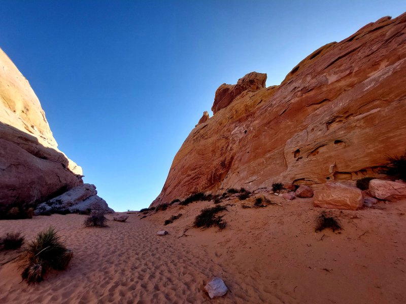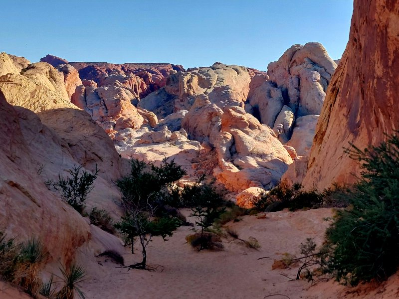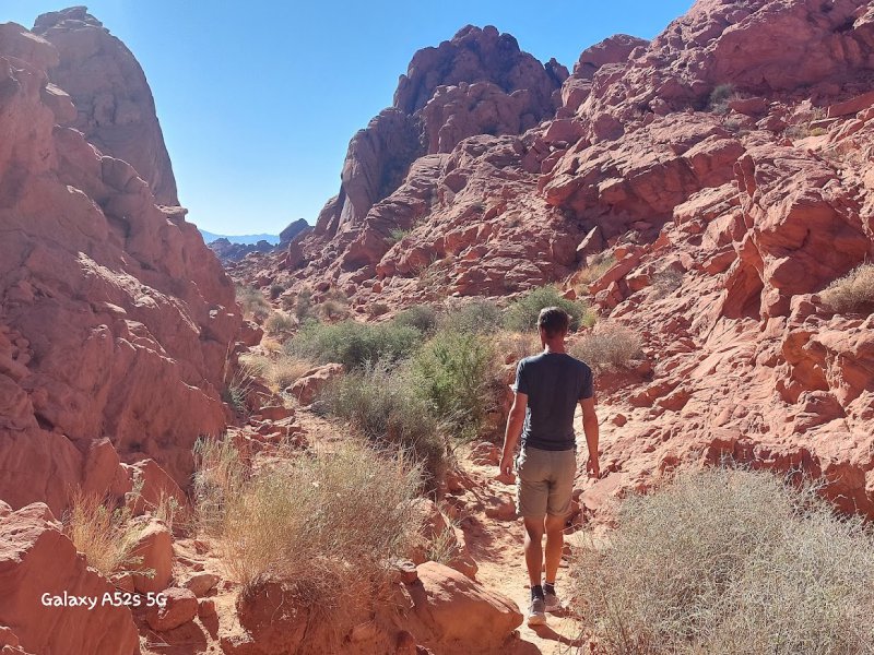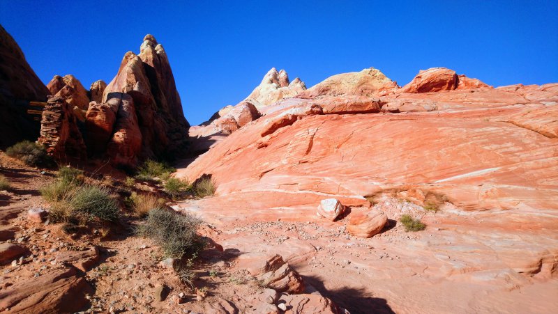 After a cold night, we continued to Valley of the Fire State Park.We were tipped about this park and we didn’t regret going there. It was beautiful! Red rocks and rock formations everywhere around us, sometimes with other colors in them. It indeed looked like fire because of all that red. We managed to get one of the last spots on the campground and then went to explore the park. There are some places where you can go on not too long hikes on and through the rock formations. The next morning we continued exploring the park, before we drove to Las Vegas.