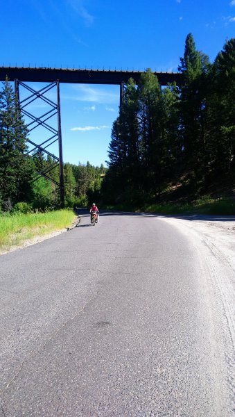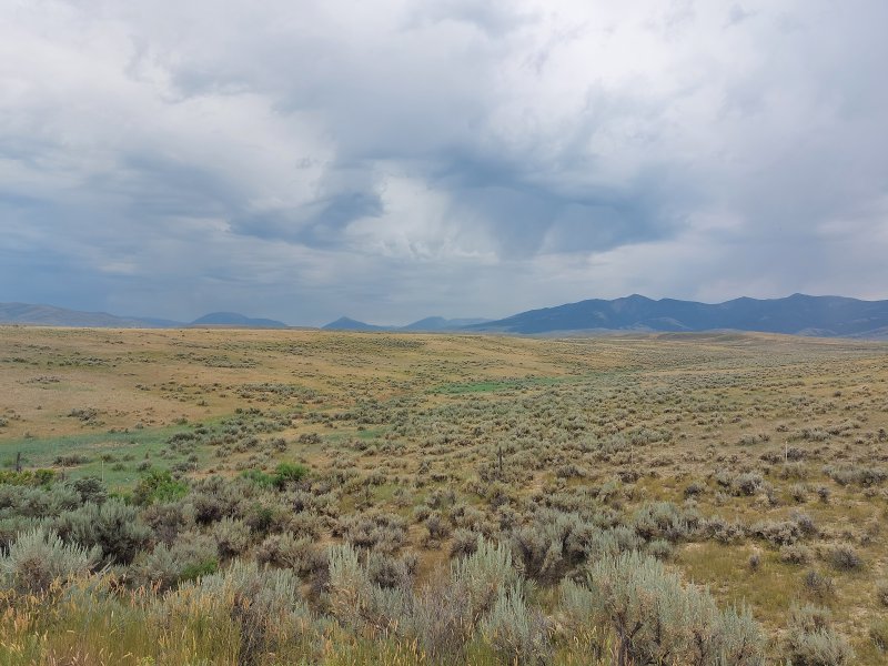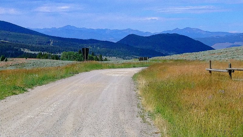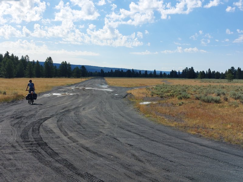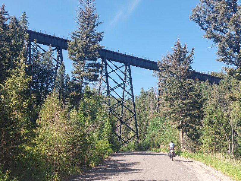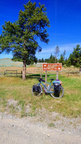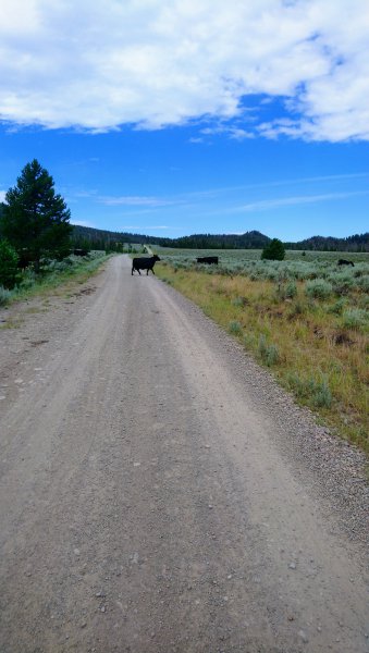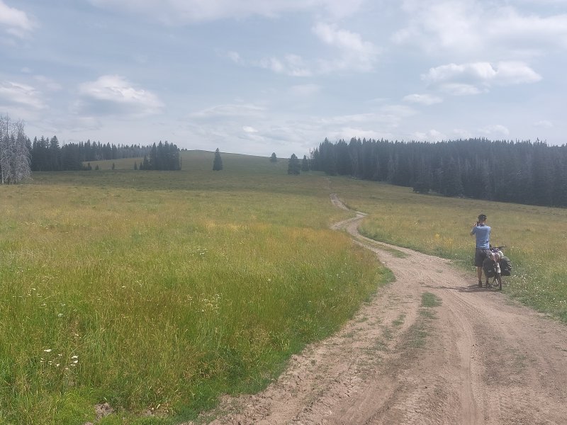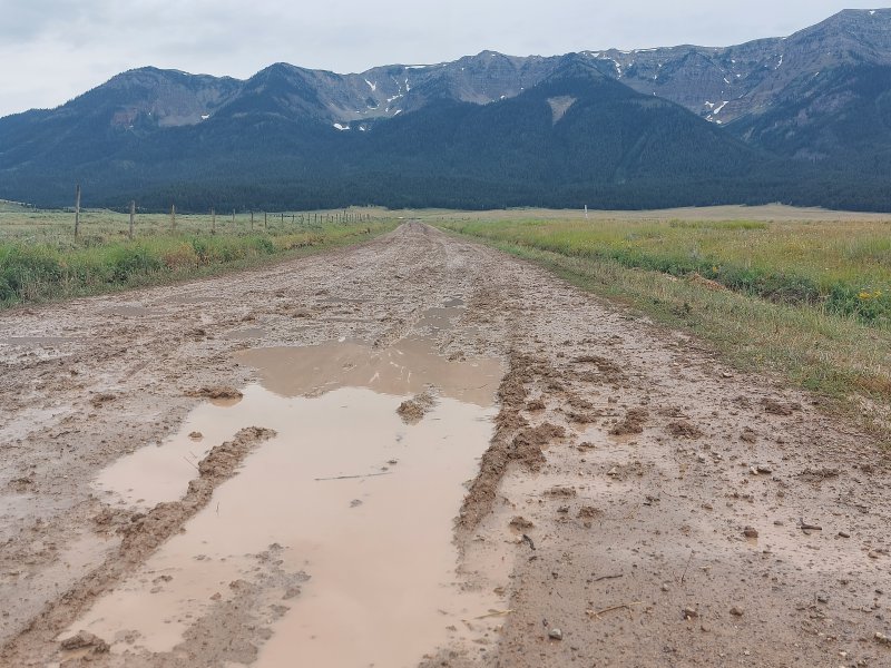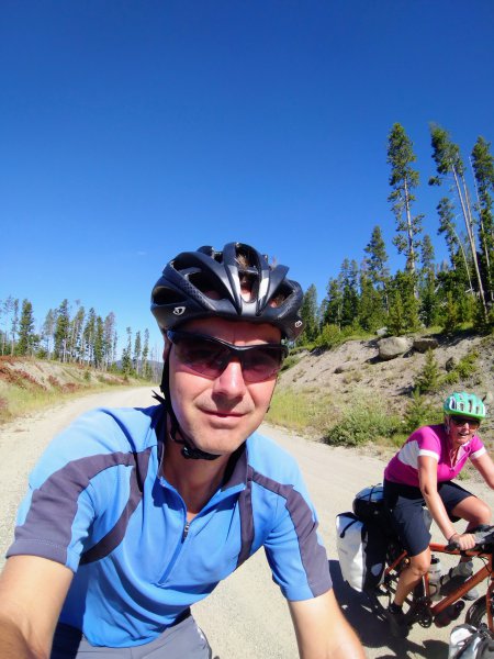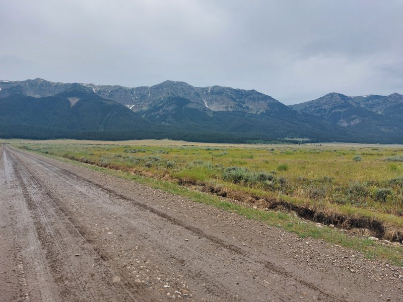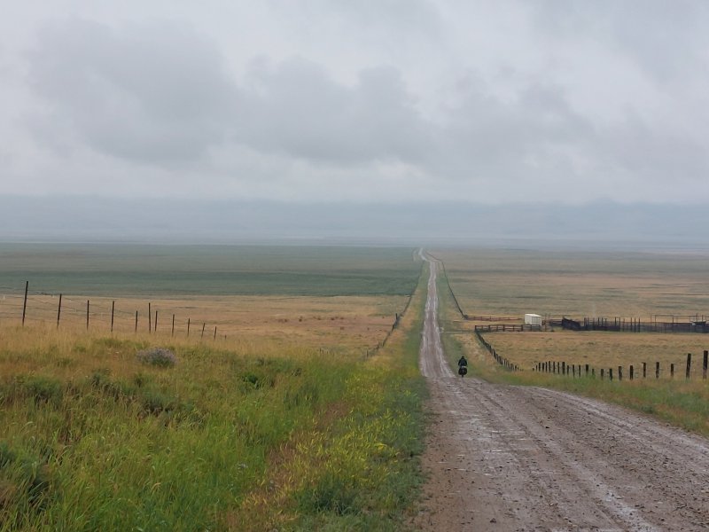 The next day was a little bit dryer and we managed to ride into civilization. Fortunately the weather got a bit better every day and after a few days we were back to riding in warmth and sunshine, even though there were still dark, threatning skies and it stayed a bit unstable. We rode on a rail trail toward Grand Teton National Park. We wanted to camp at a ranch, but weren’t allowed to because of the many (grizzly)bears in the area. The bears had even been on the front porch so camping wasn’t allowed. We had to rent a cabin, but we didn’t even mind because there was another big thunderstorm that evening. We didn’t see any bears…