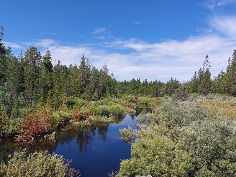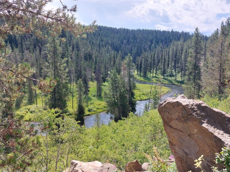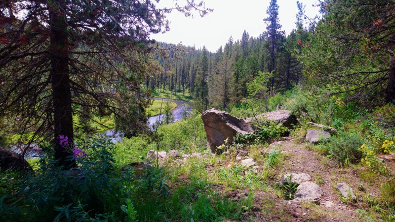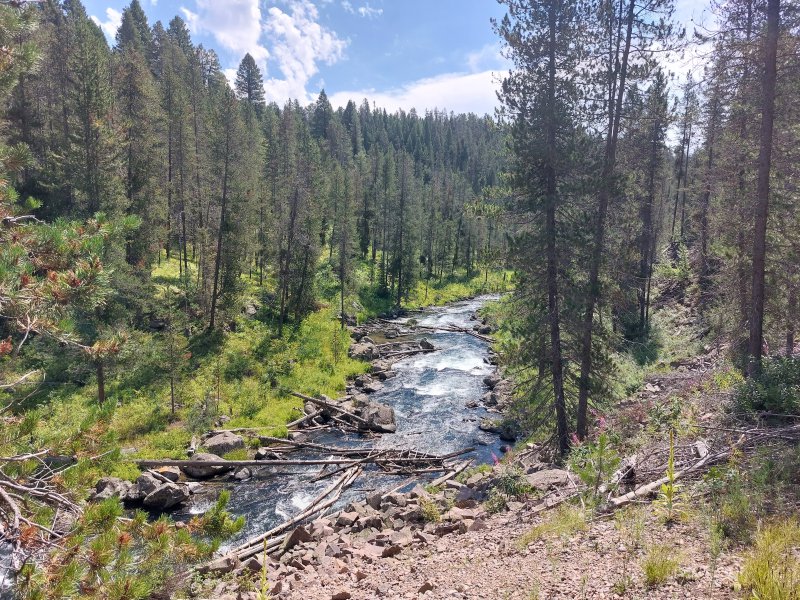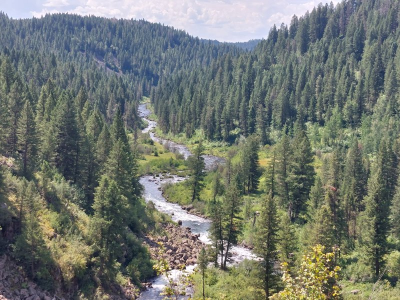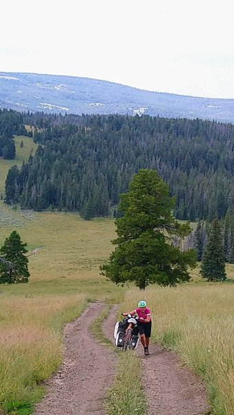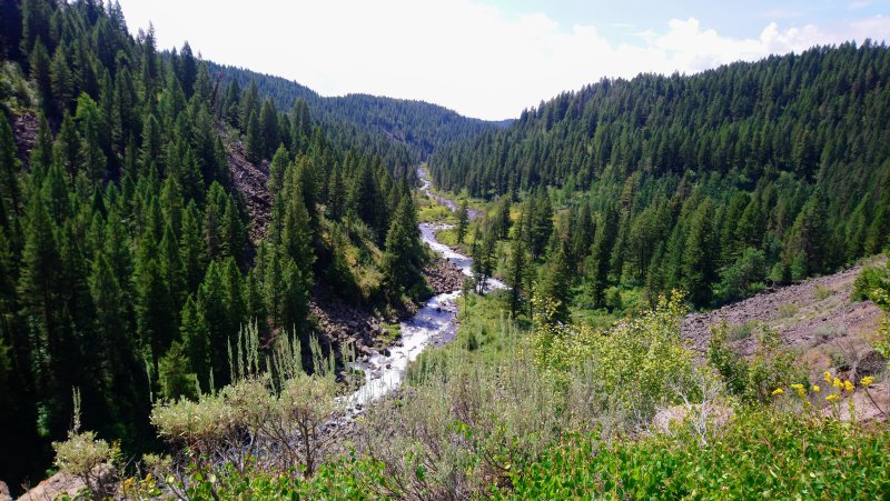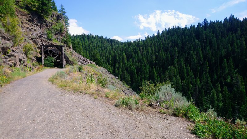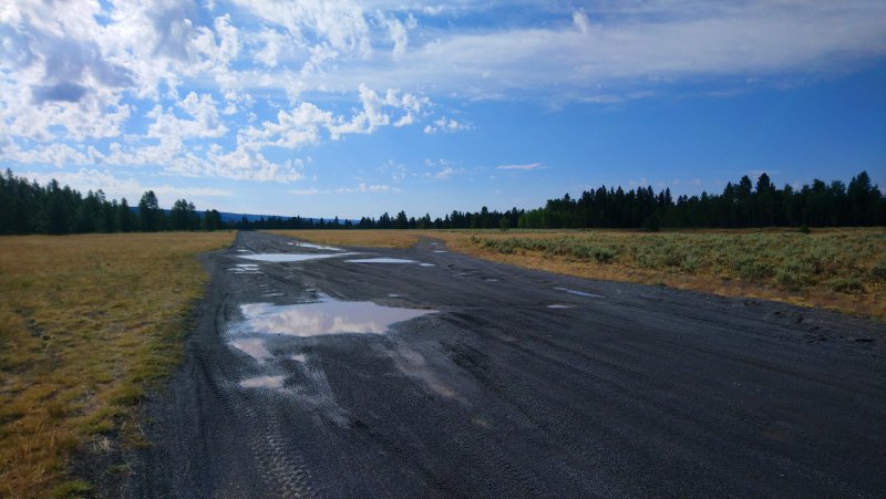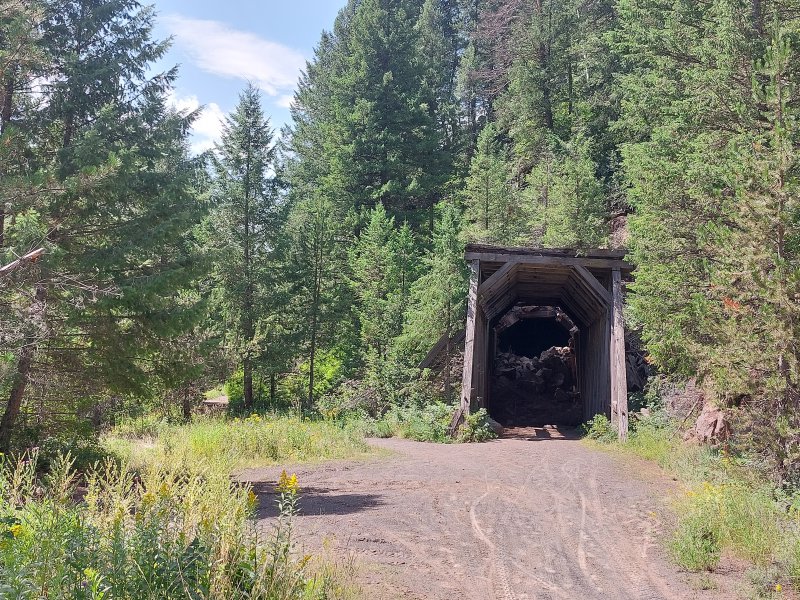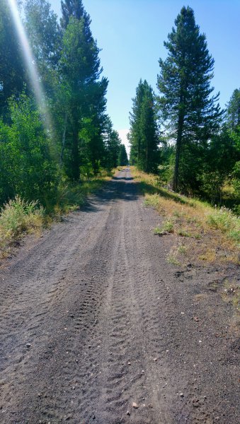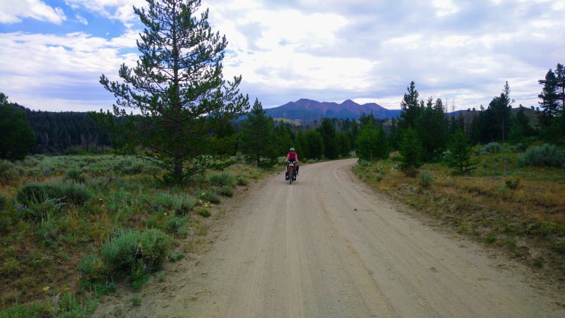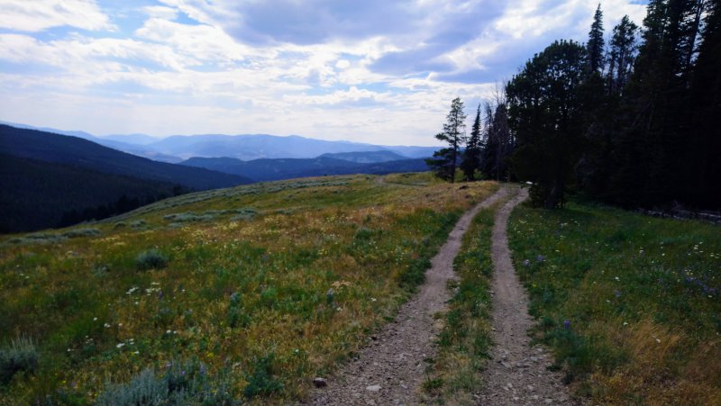 The next day was a little bit dryer and we managed to ride into civilization. Fortunately the weather got a bit better every day and after a few days we were back to riding in warmth and sunshine, even though there were still dark, threatning skies and it stayed a bit unstable. We rode on a rail trail toward Grand Teton National Park. We wanted to camp at a ranch, but weren’t allowed to because of the many (grizzly)bears in the area. The bears had even been on the front porch so camping wasn’t allowed. We had to rent a cabin, but we didn’t even mind because there was another big thunderstorm that evening. We didn’t see any bears…