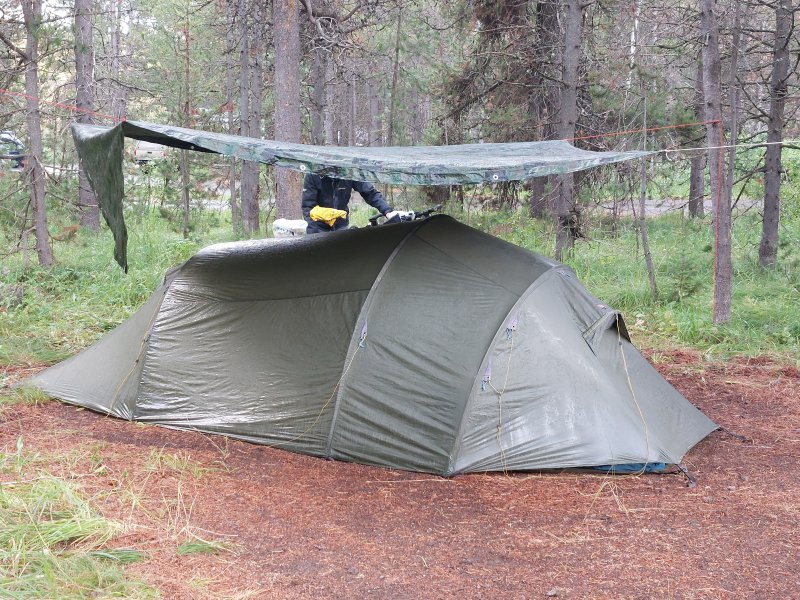 Just before another rainshower, we arrived in Grand Teton National Park and Colter Bay, the created village with hotels, campground, grocery store and restaurants. We treated ourselves to a pizza and stayed there on a rainy day to do some maintance on the bikes and to wait for better weather.